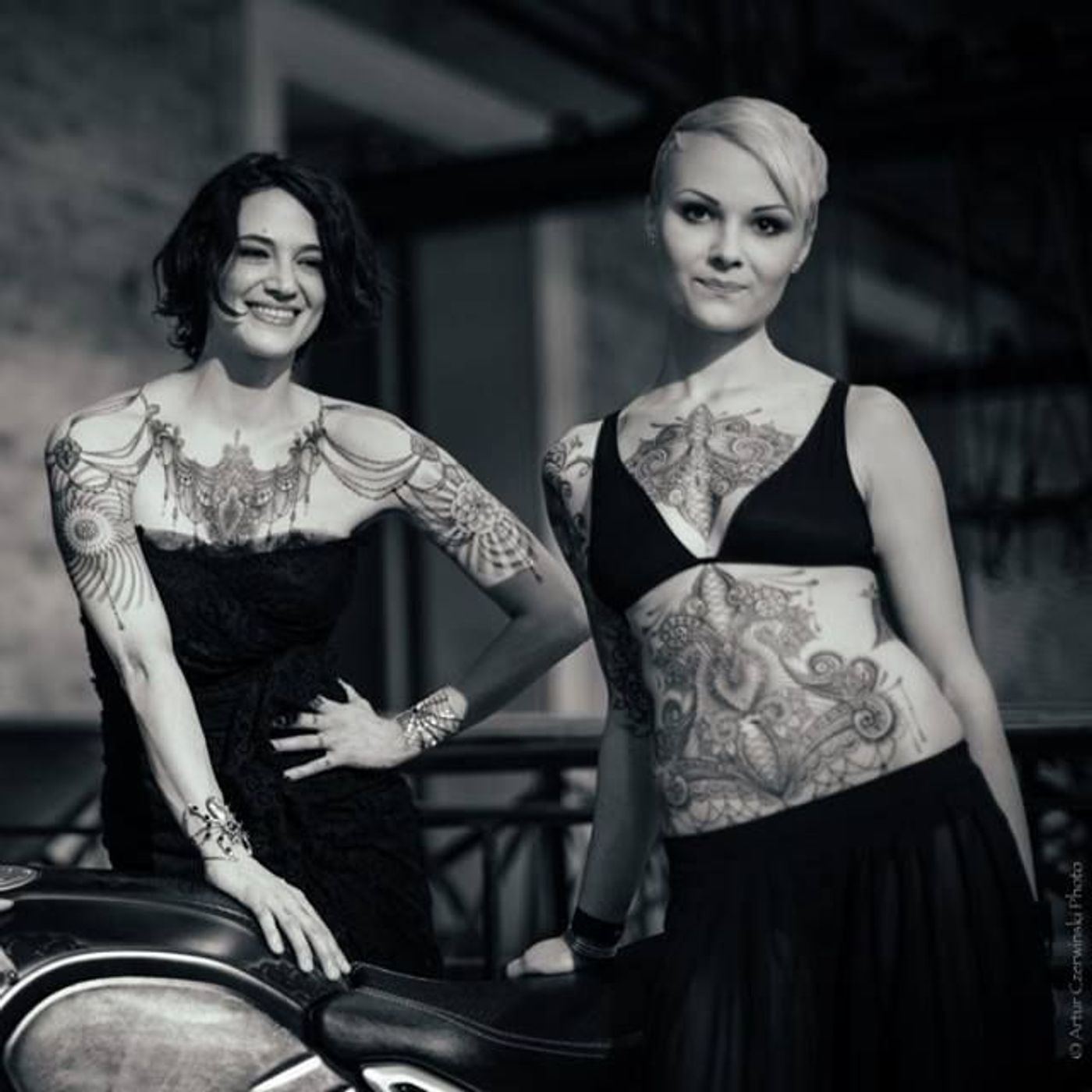 Asia Argento and a model, both tattooed by Marco Manzo #TattooForever #MarcoManzo #AsiaArgento #museum #art #tattoo