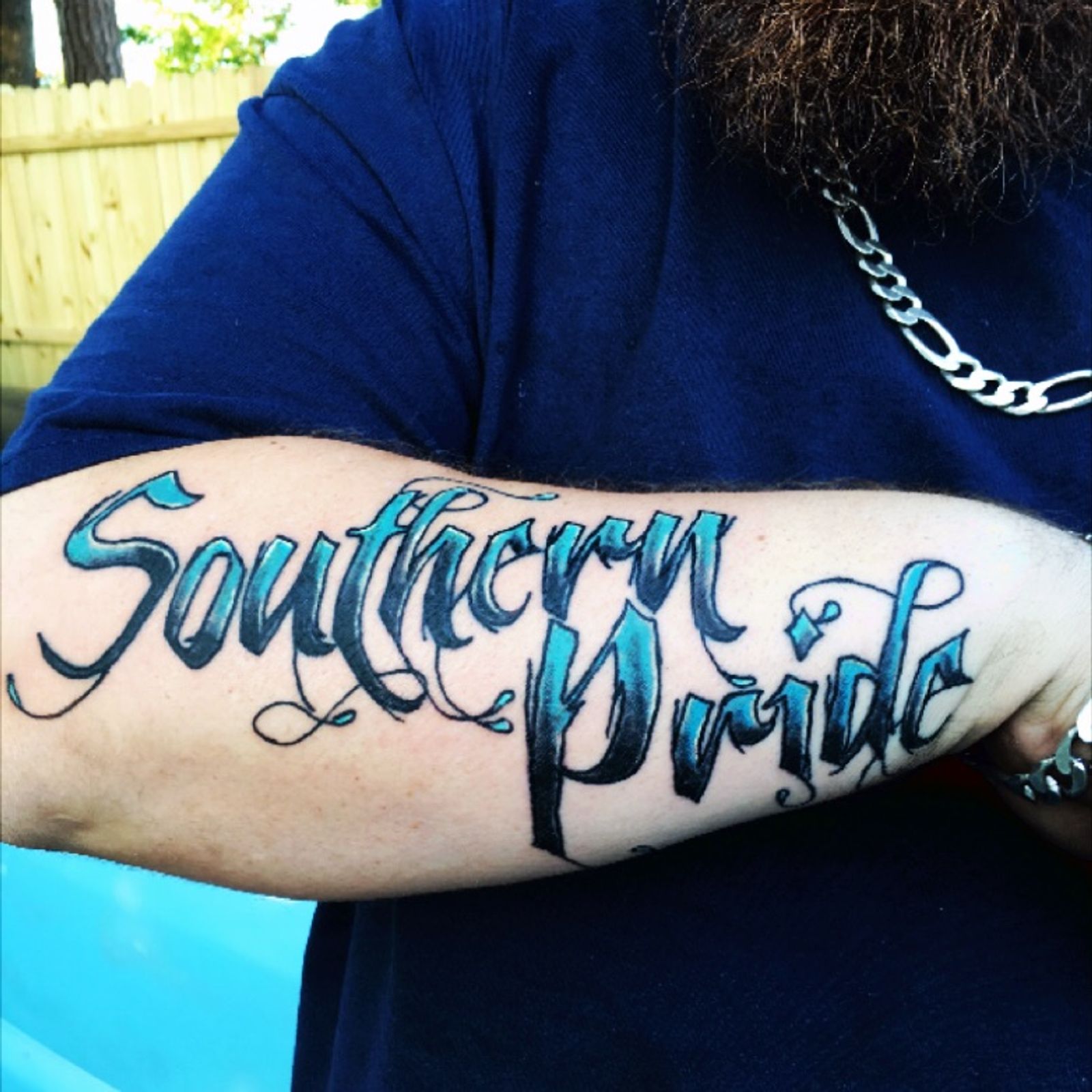 Some old forearm lettering the customer chose this font #tattooingjaxfl