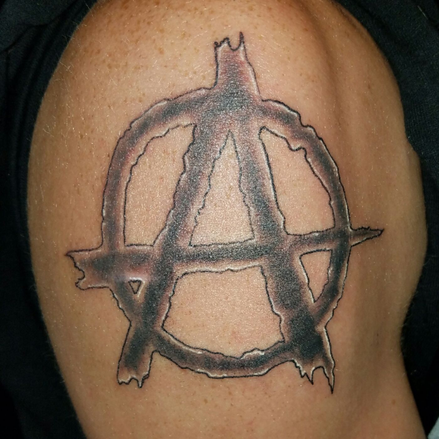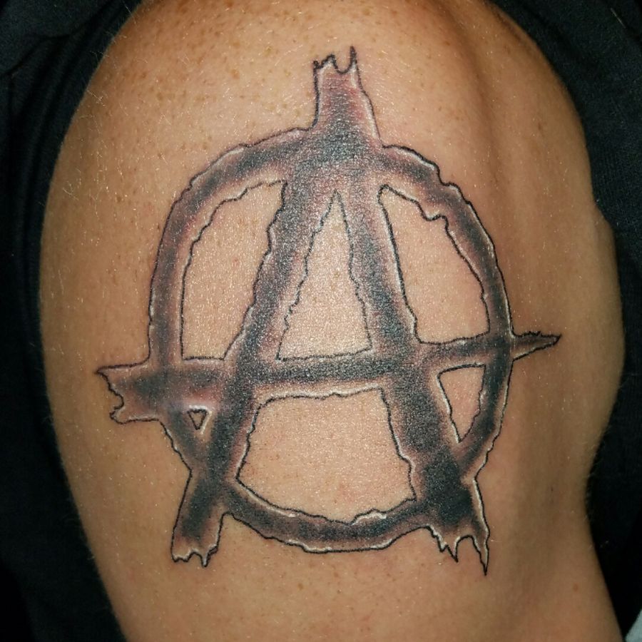 A little anarchy symbol today... #femaletattooartist #femaletattooist #ink #tattoo #enternalink #blackandgrey #anarchy