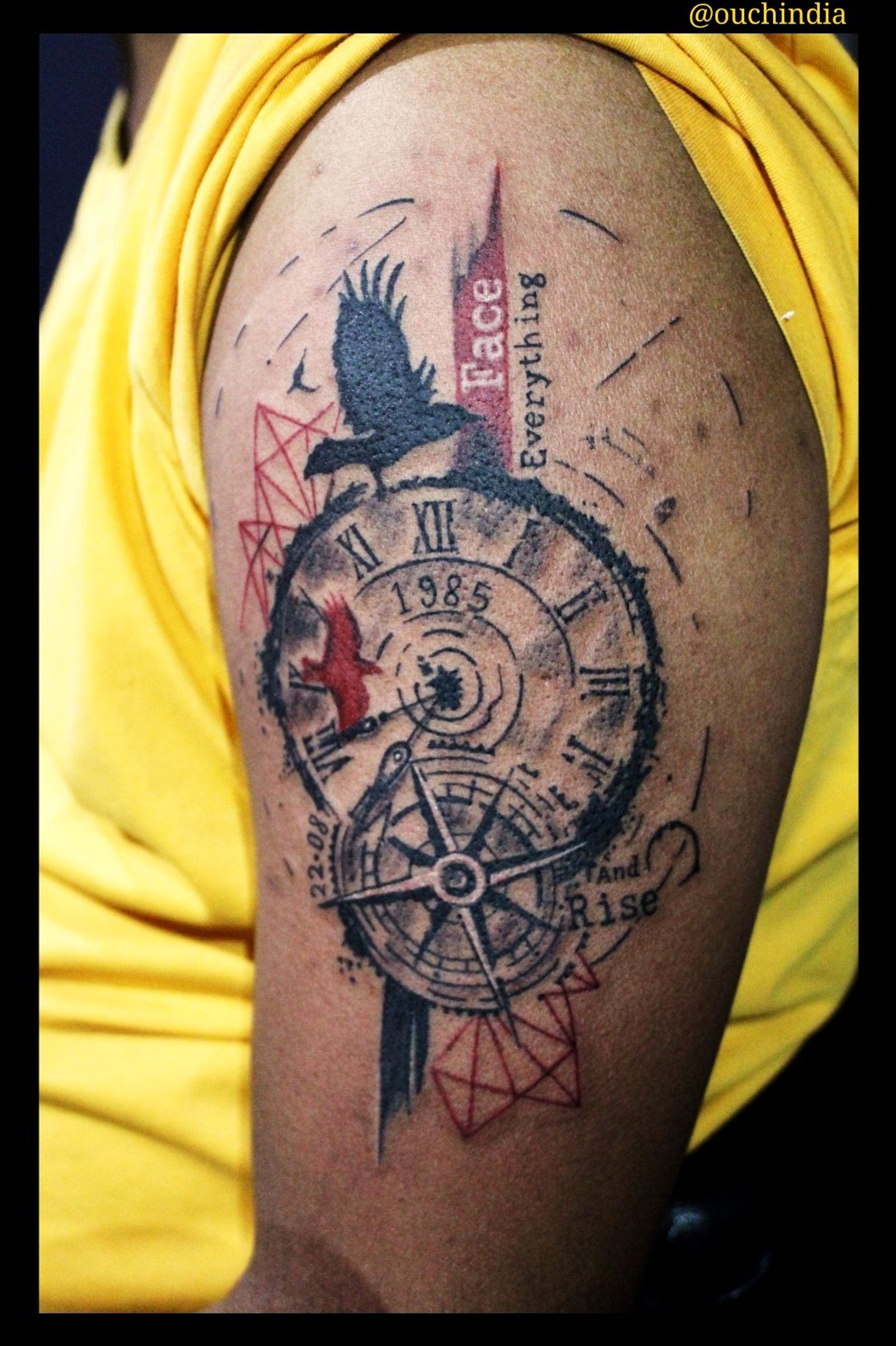 Time illustration tattoo at ouch For bookings call 7382521886, 9848597806.