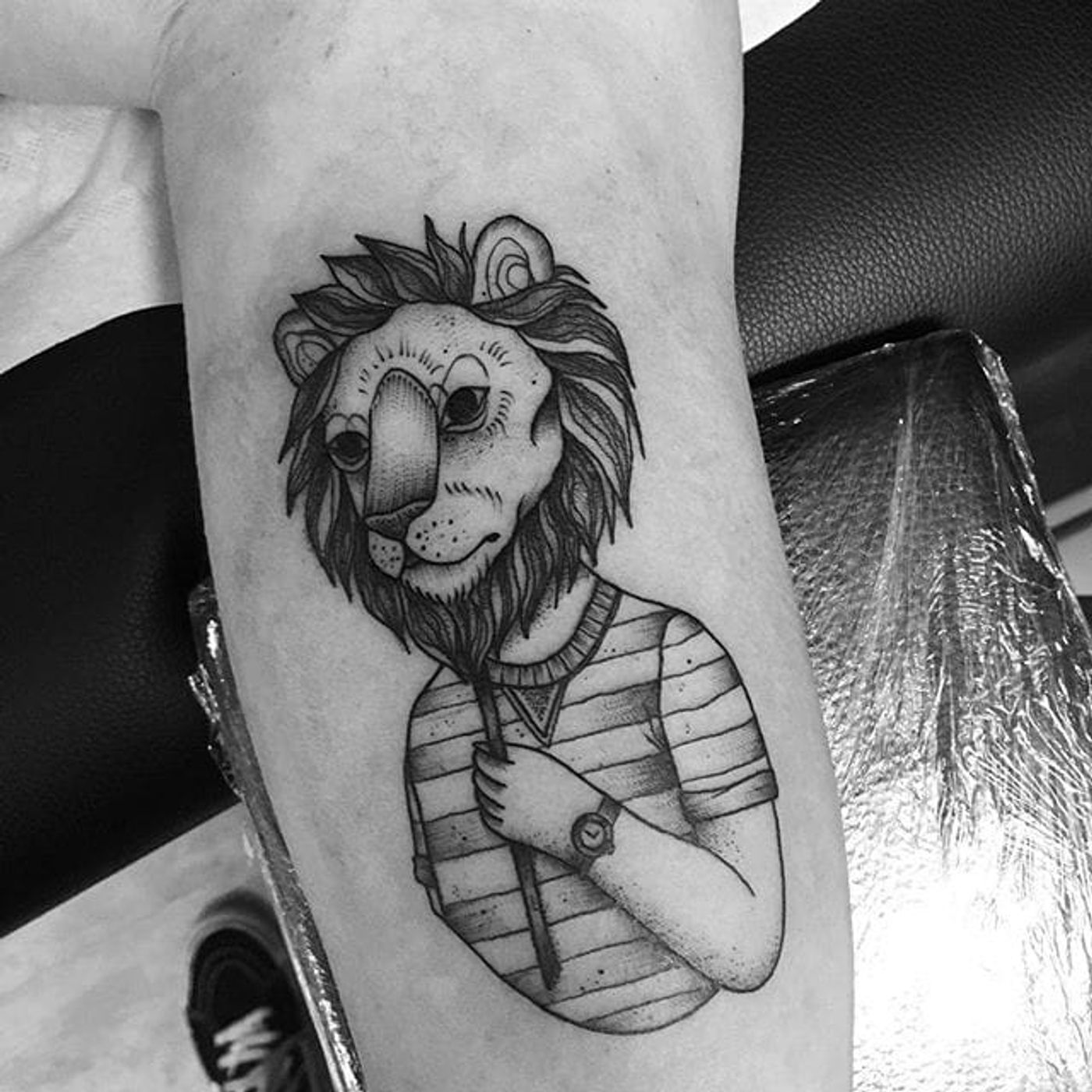 Lion mask tattoo by Santa Cara. #SantaCara #mask #blackwork #masked #lion