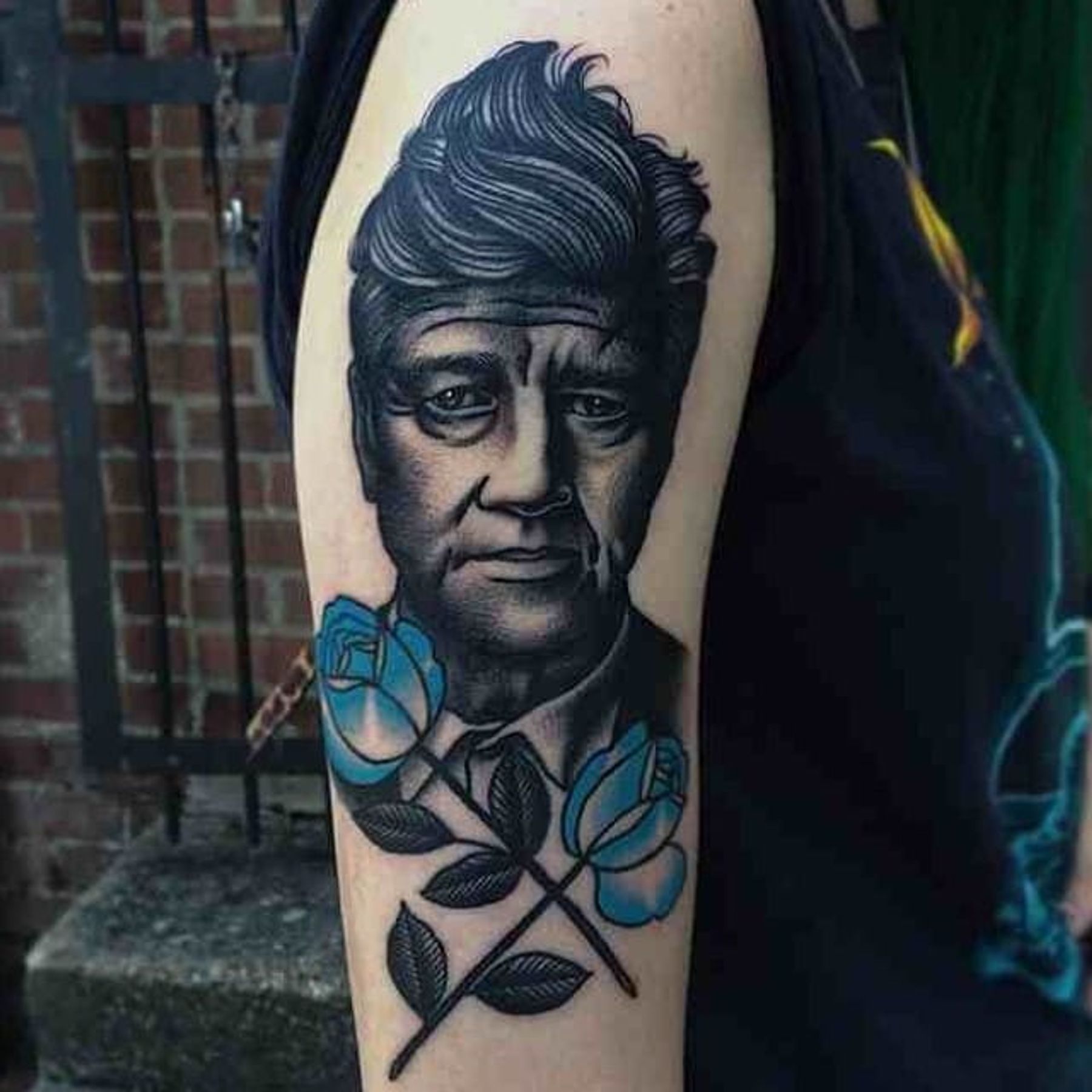 Blue portrait, David Lynch tattoo by Danielle Rose. #DanielleRose #bluerose #rosetattoo #filmdirectorstattoo #DavidLynch