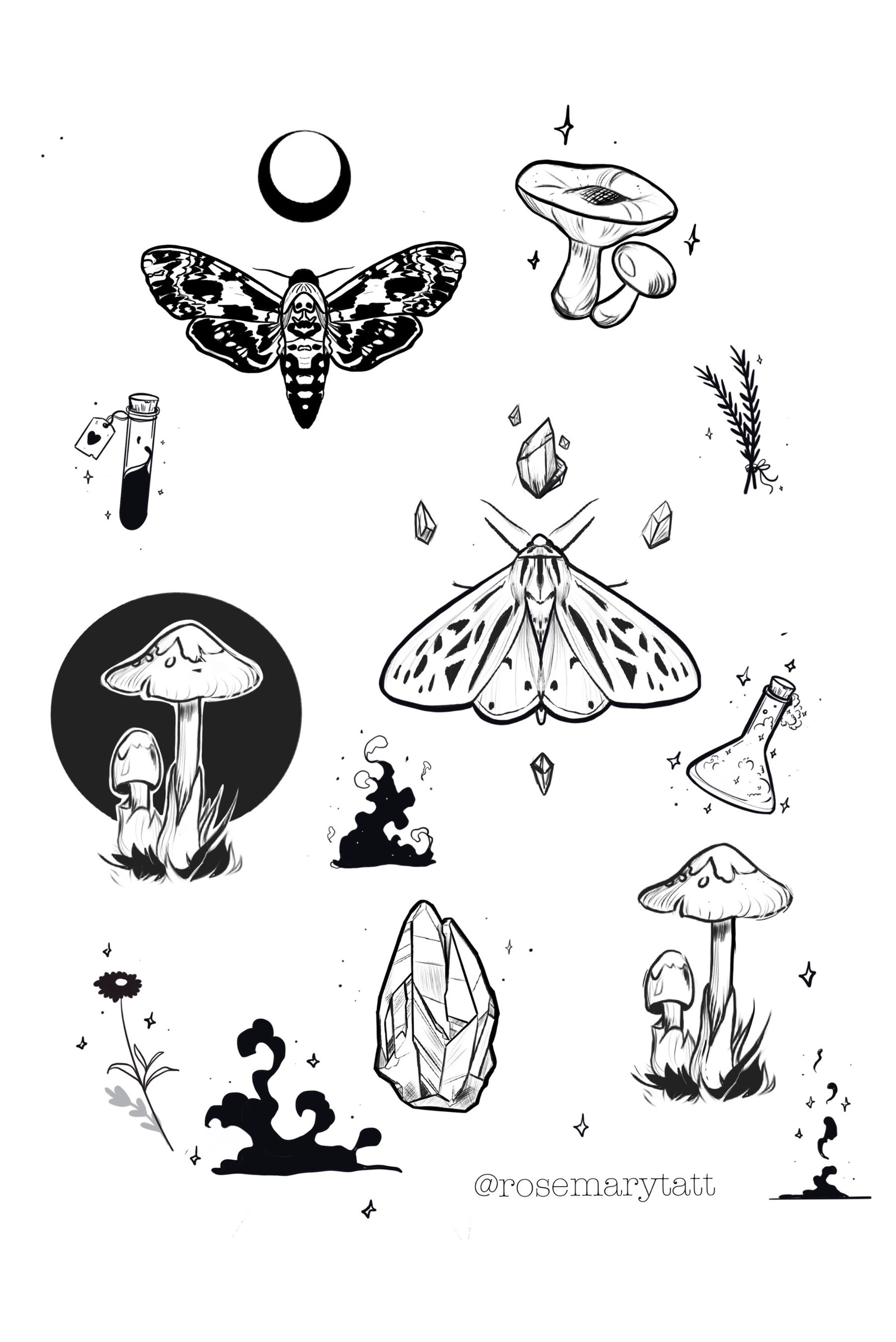 Flash card mystic september #available #flas #flashcard #moth #magic #mystical # mystic #blackandwhite #mushrooms #botanical #moon #night #wicca #potion