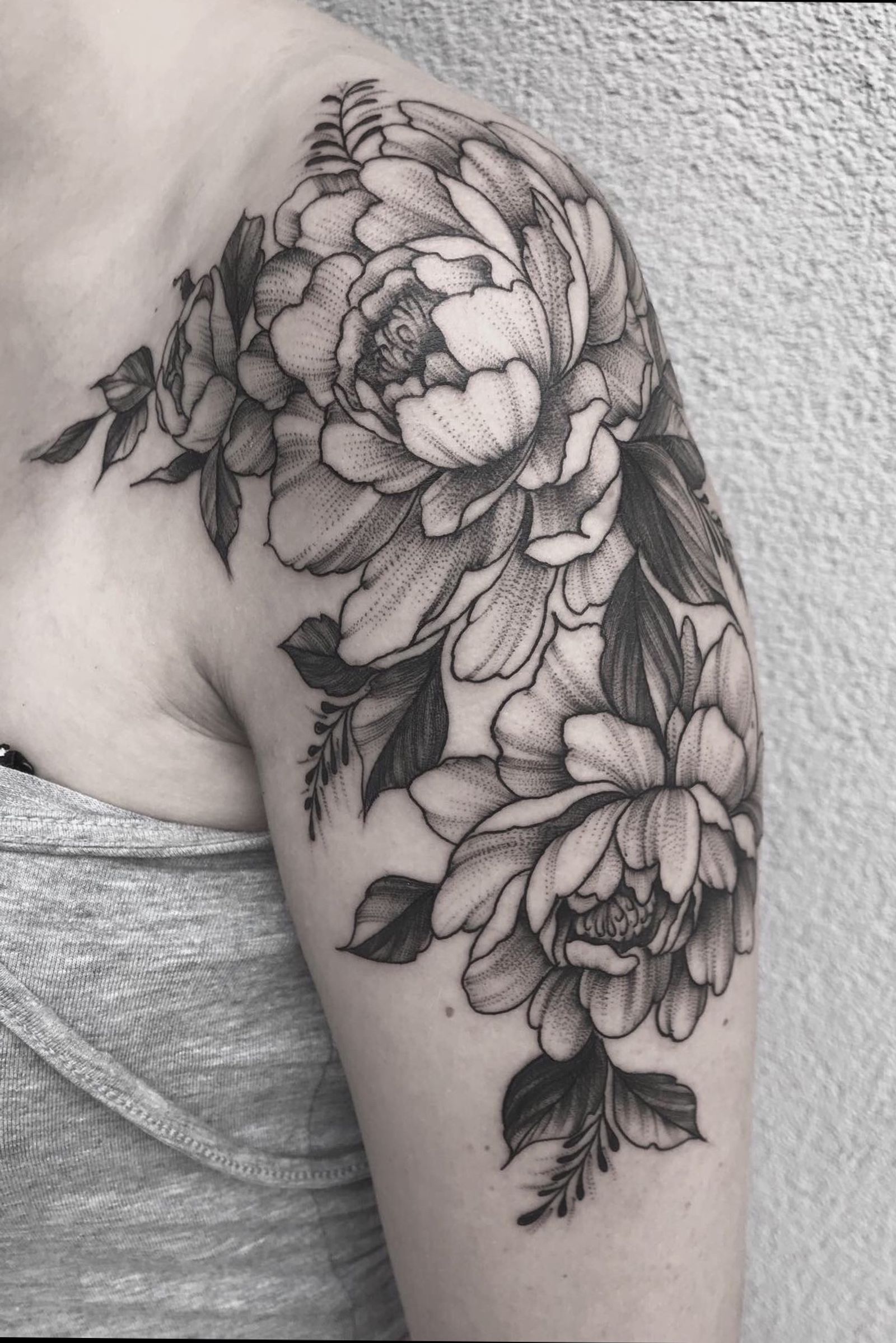 Peony😁 #flower #flowers #peony #peonytattoo #floral #dotwork #linework #blackandgrey #Black