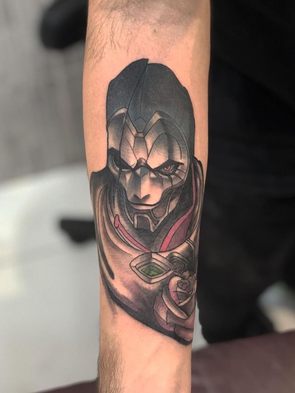 Jhin • @ancoranegratatuaria • #blackandgrey #blackandgreytattoo #blackwork #blackworktattoo #blackworkers #ancoranegratatuaria #oldschool #tradicionaltattoo #leagueoflegends