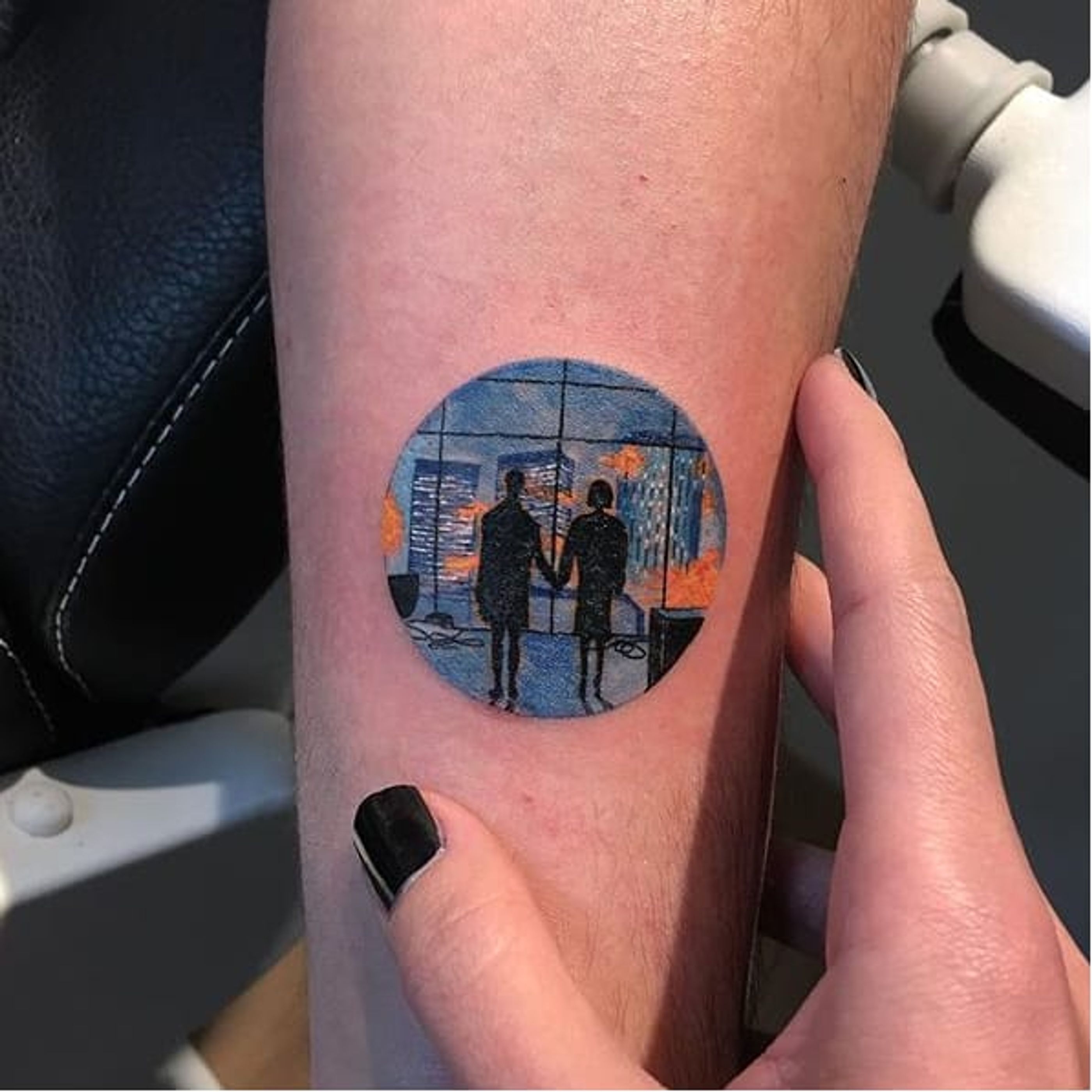 Fight Club tattoo by Eva Krbdk. #EvaKrbdk #Eva #Turkish #circle #miniature #mini #scenery #scene #fightclub #movie