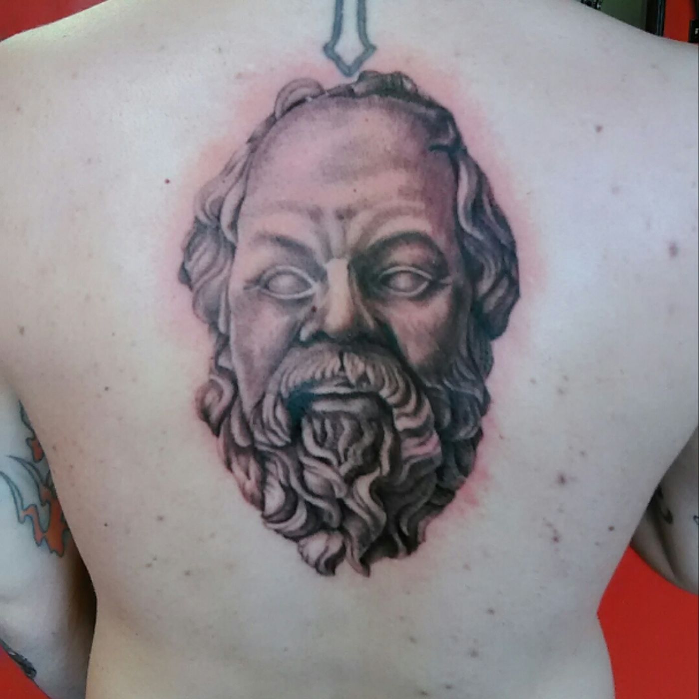 Got to start this #backpiece of #historical figures. Starting with this #socrates #portrait. #tattoosbyfisch #studioxtattooco #tattoos #tattoo #blackandgrey #silverbackinkstupidblack