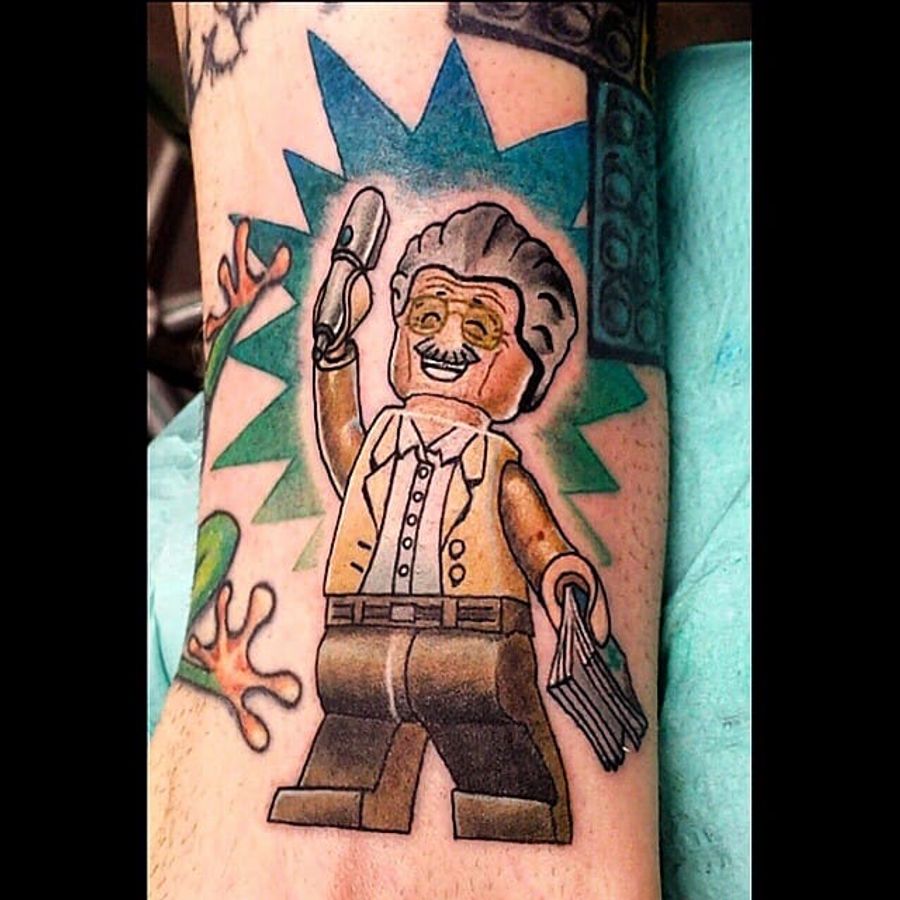 Lego Stan Lee Tattoo by @needlez_art #stanlee #stanleetattoo #stanleetattoos #marvel #marveltattoo #marveltattoos #comictattoo #marvelcomics #lego #legotattoo