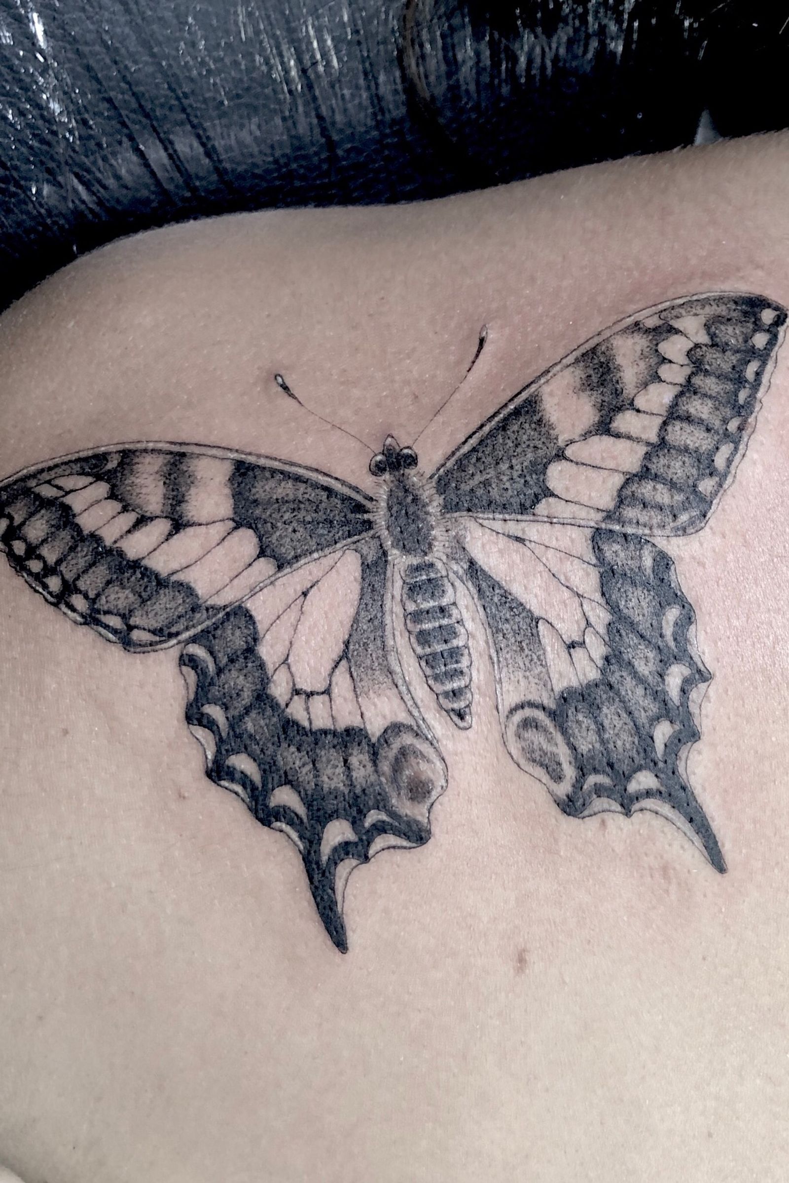 Fine line single needle #butterfly tattoo. #fineline #singleneedle #singleneedletattoo #dotwork #stippletattoo #singleneedlework #finelinework #singleneedletattoos #butterflytattoo