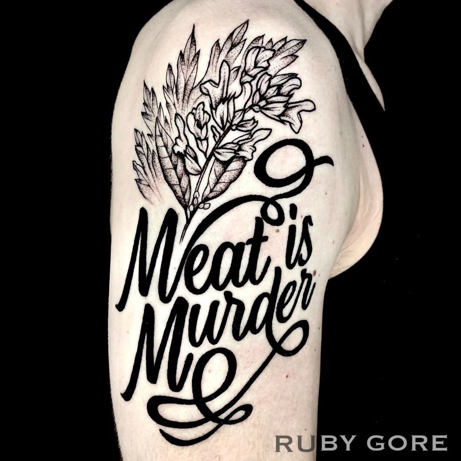 Blackwork meat is murder tattoo https://www.instagram.com/therubygore/ http://www.therubygore.com #vegantattoo #onlyblackart #btattooing #blacktattooart #blackworkers #blackwork #illustrativetattoo #birdtattoo #flowertattoo #floraltattoo #planttattoo #botanicaltattoo #naturetattoo #dotworktattoo #phillytattoo #phillyink #bestofphilly #newjerseytattoo #delawaretattoo #newyorktattoo #nytattoo #nyctattoo #brooklyntattoo #baltimoretattoo #marylandtattoo #bostontattoo #bayareatattoo #sftattoo #latattoo #sandiegotattoo