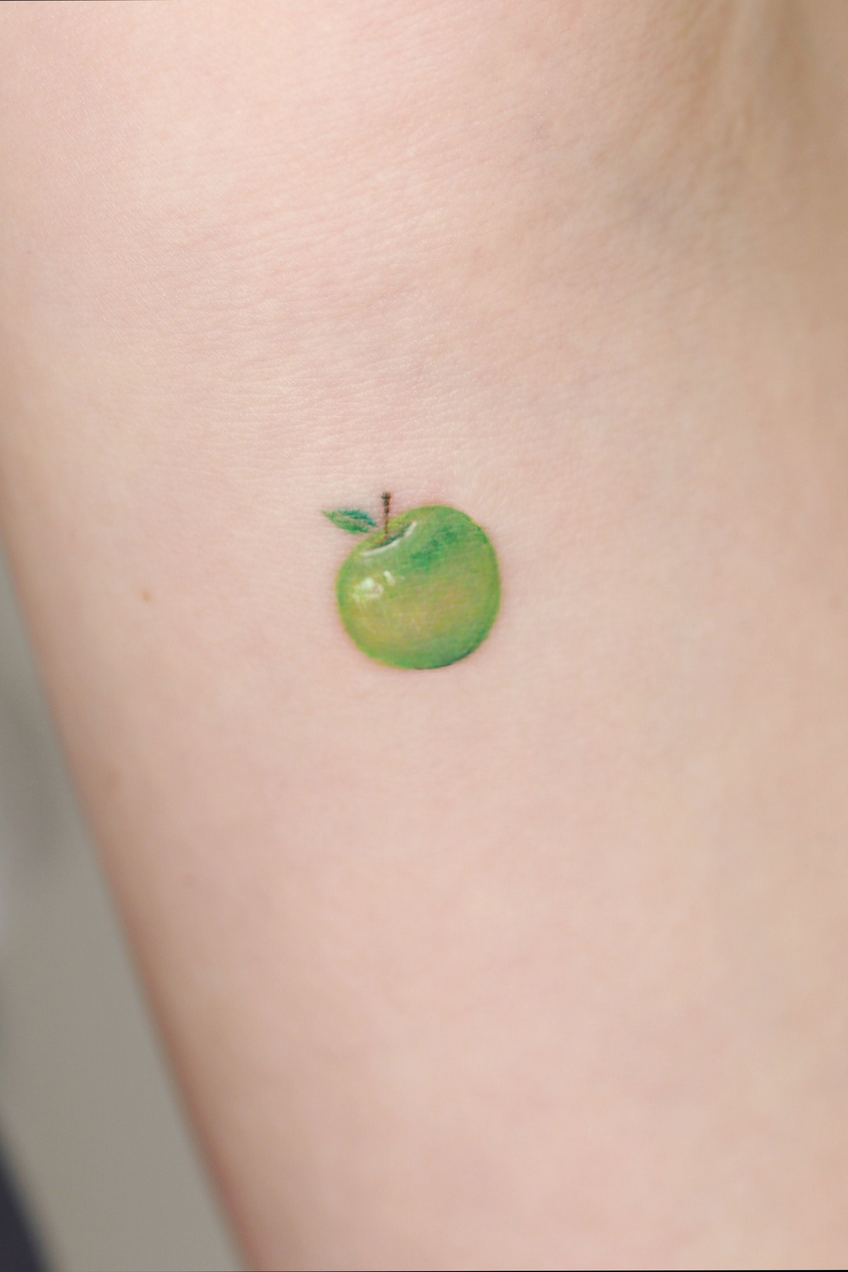 minyminy green apple🍏😀. #watercolortatt #colortattoo #appletattoo #Koreanatist #koreatattoo