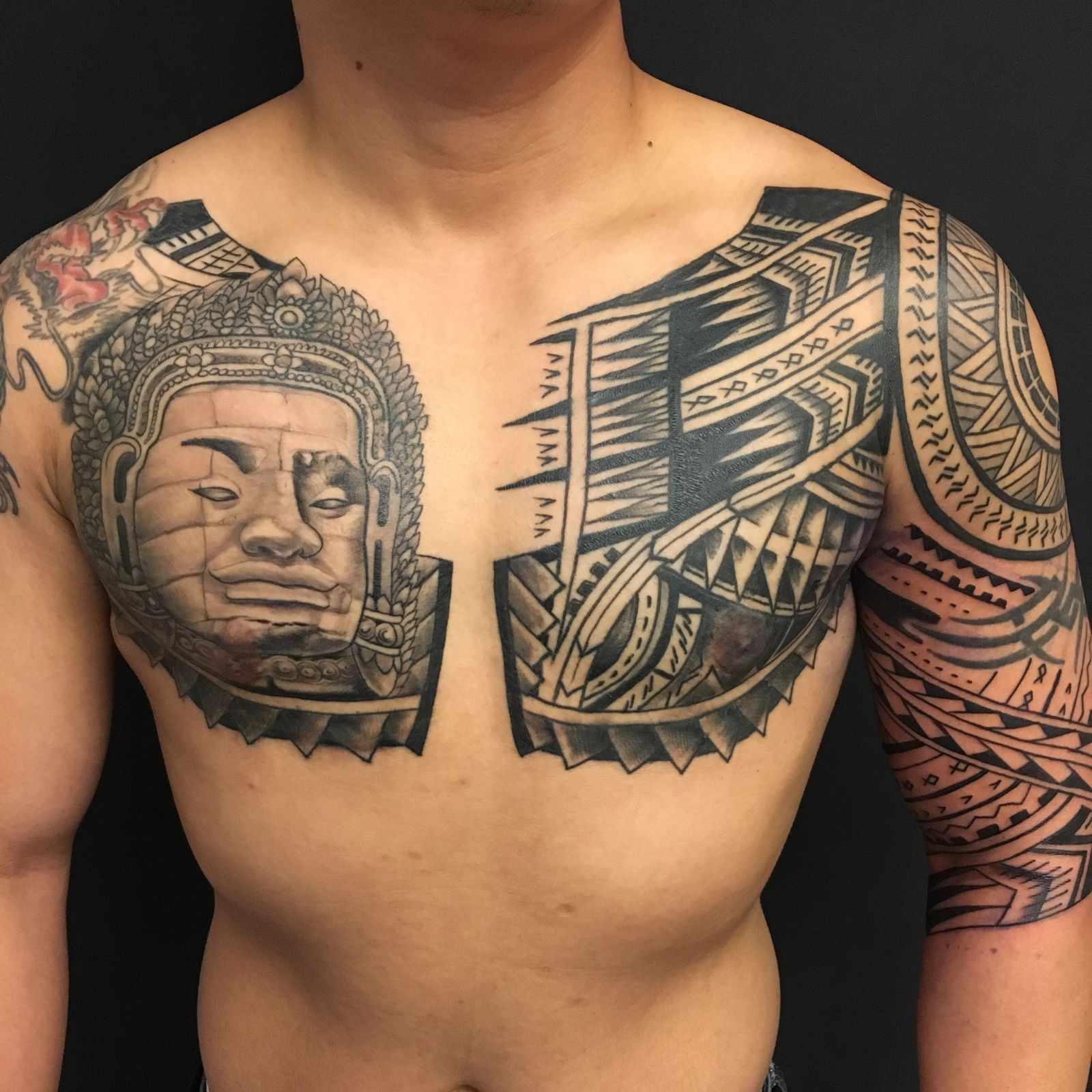 Scar cover up tattoo by Shane Wallin #ShaneWallin #scarcoveruptattoo #scarcoverup #genderconfirmation #genderconfirmationtattoo #topsurgeryscarcoverup #topsurgerytattoo