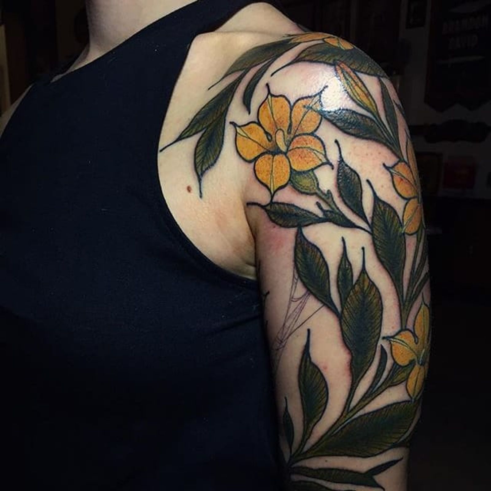 Neo traditional yellow jasmine flowers by Savannah Colleen McKinney. #neotraditional #flower #jasmine #jasmineflower #SavannahColleenMcKinney