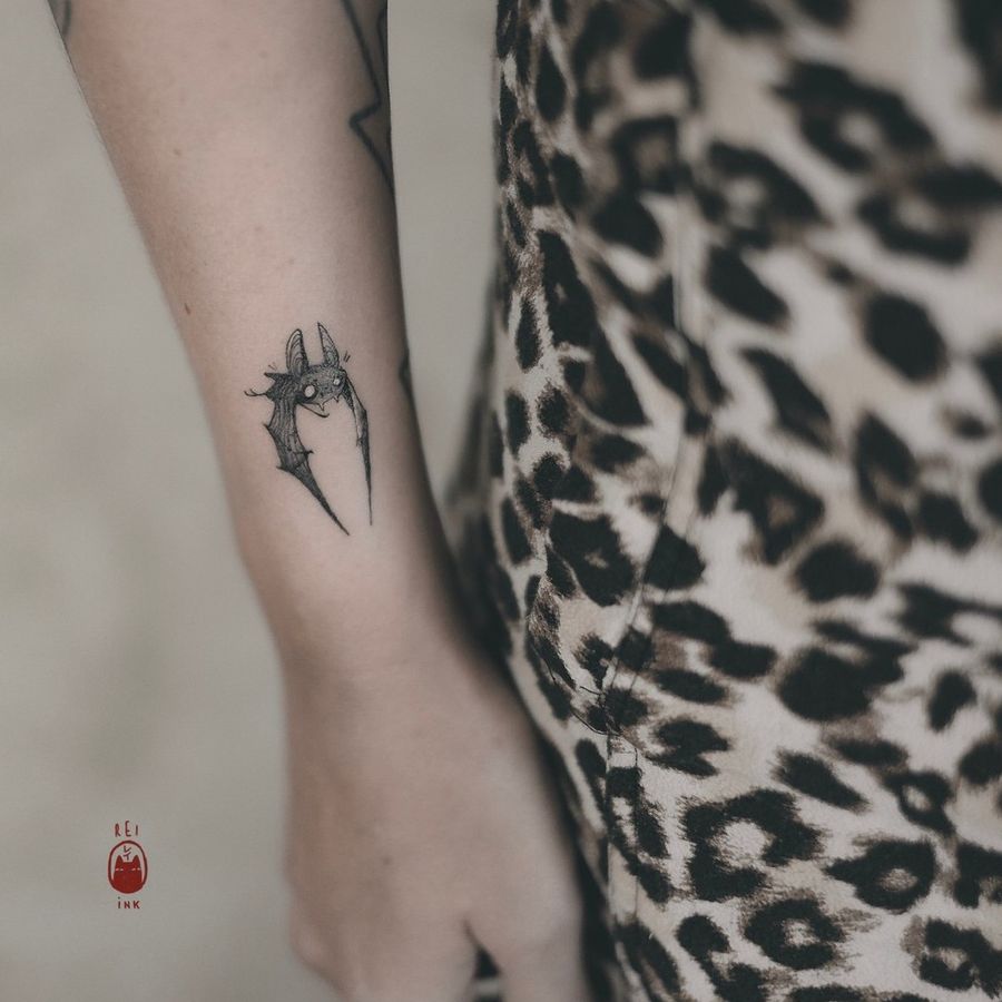 MICROBAT #darktattoo #small #dark #bat #flyingbat #wristtattoo #battattoo