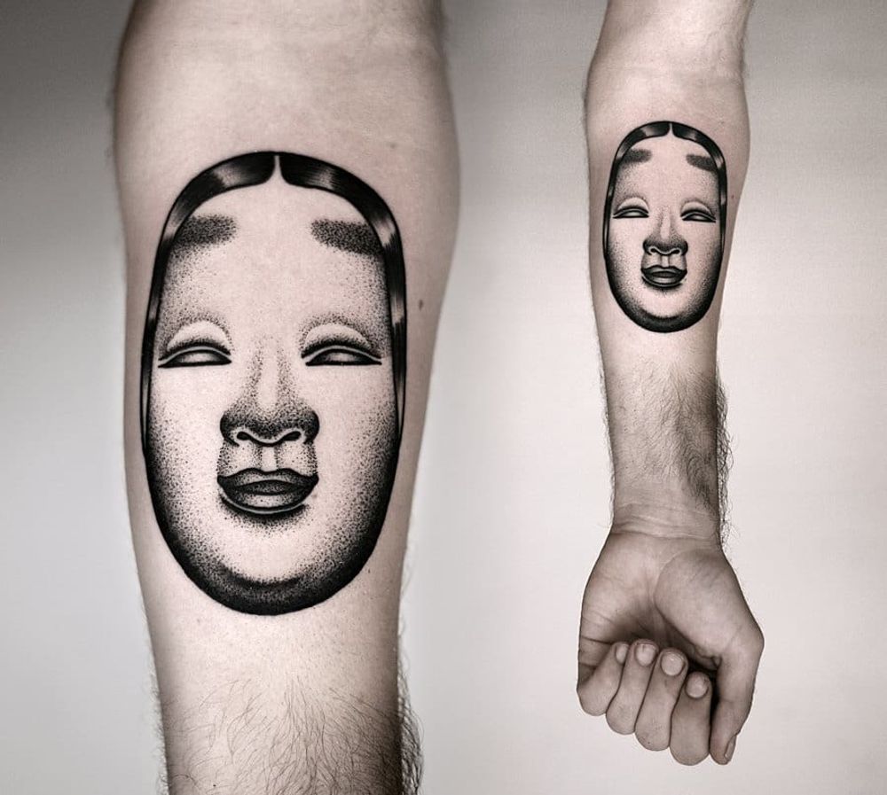 Another well-known Noh mask is this white feminine face, called Ko-omote. Here by Kamil Czapiga.