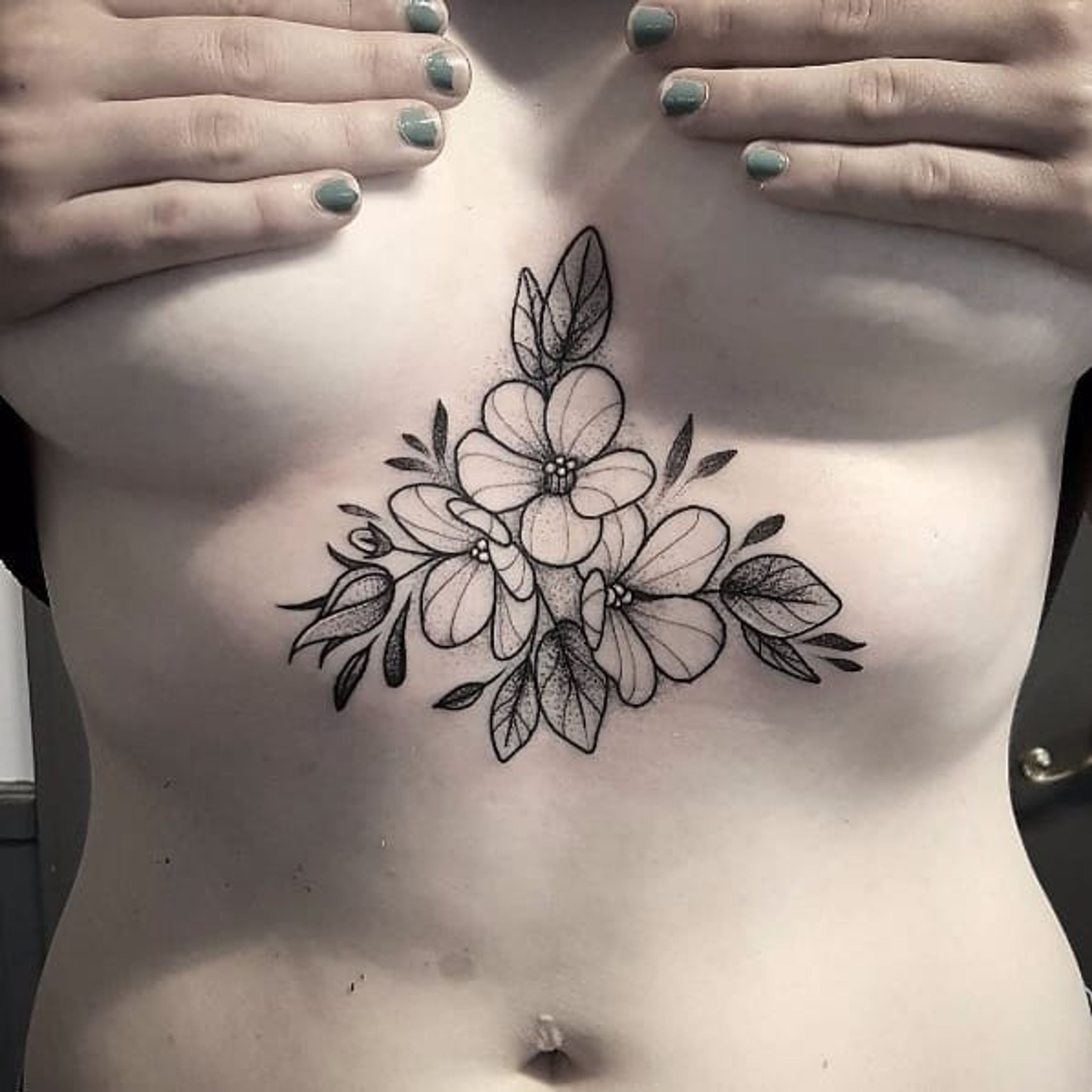 Delicate floral tattoo by Cutty Bage #CuttyBage #sketch #sketchstyle #blackwork #flower