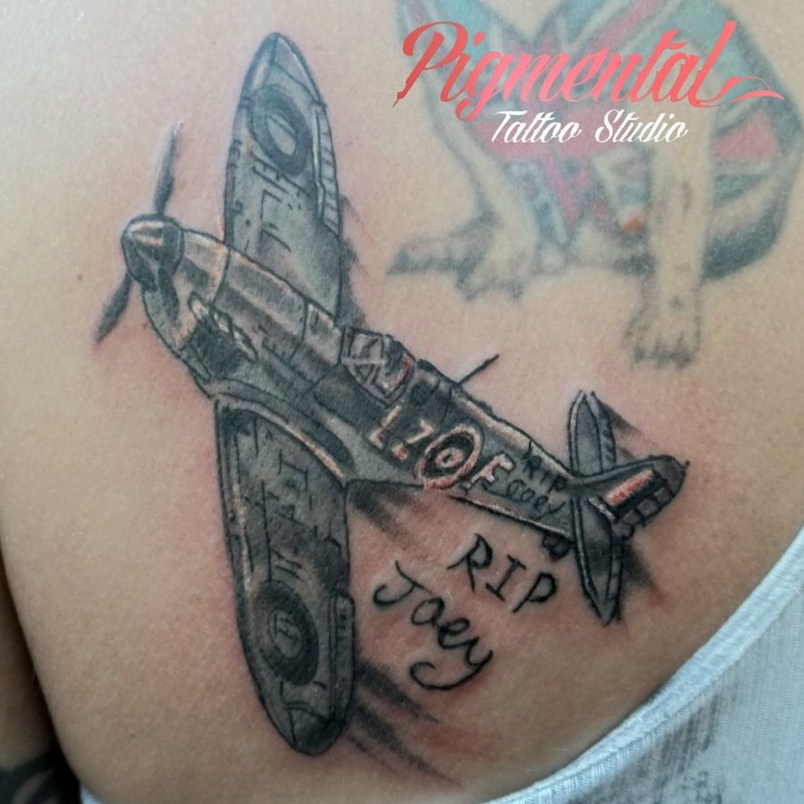 Spitfire Memorial Tattoo #Spitfire #SpitfireTattoo #MemorialTattoo #PlaneTattoo