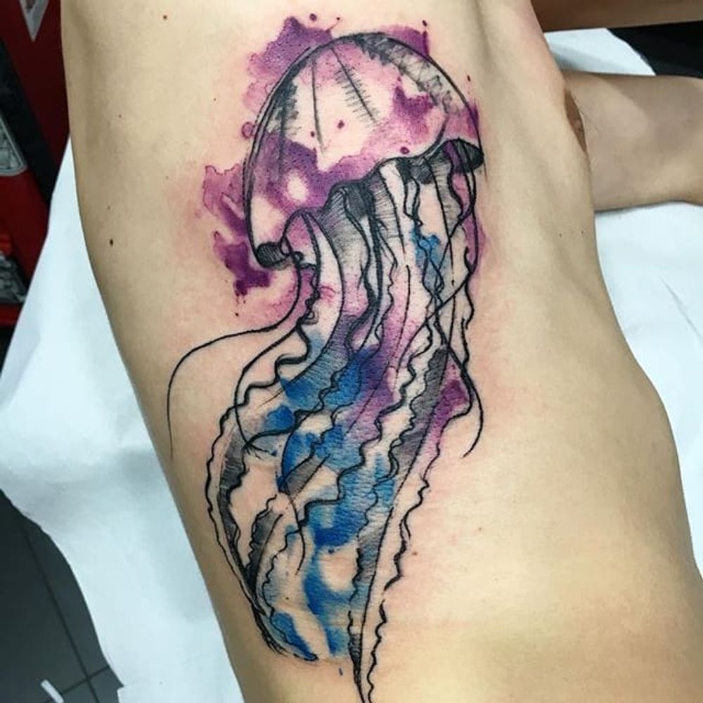 Watercolor jellyfish tattoo by Sandro Stagnitta. #sketch #watercolor #SandroStagnitta #jellyfish