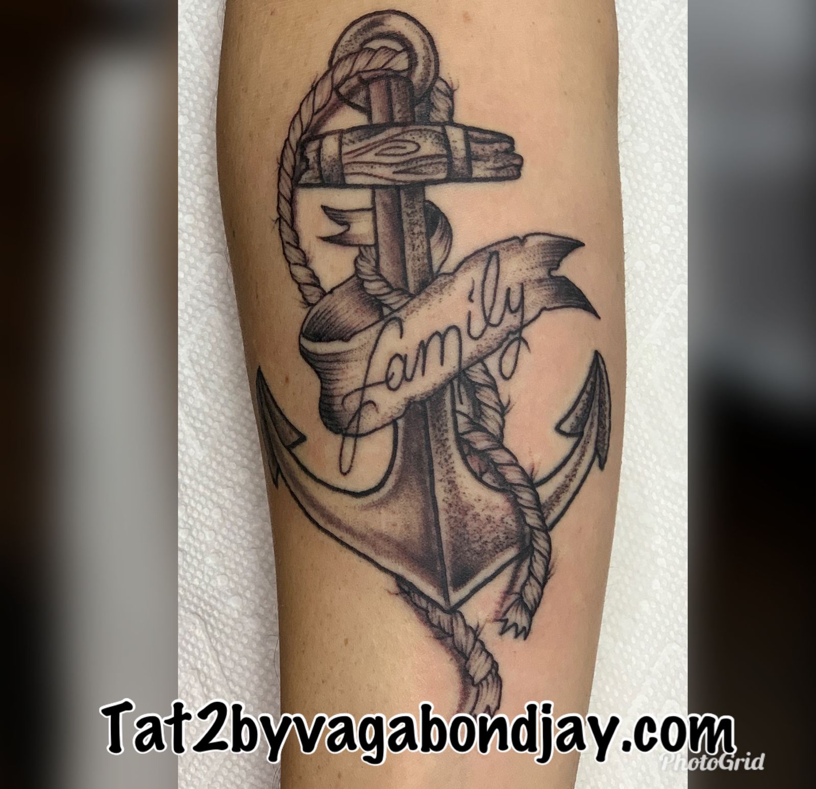 Family anchor #Handcraftedwhileyouwait #anchortattoo #navytattoo #stippling #blackandgrey