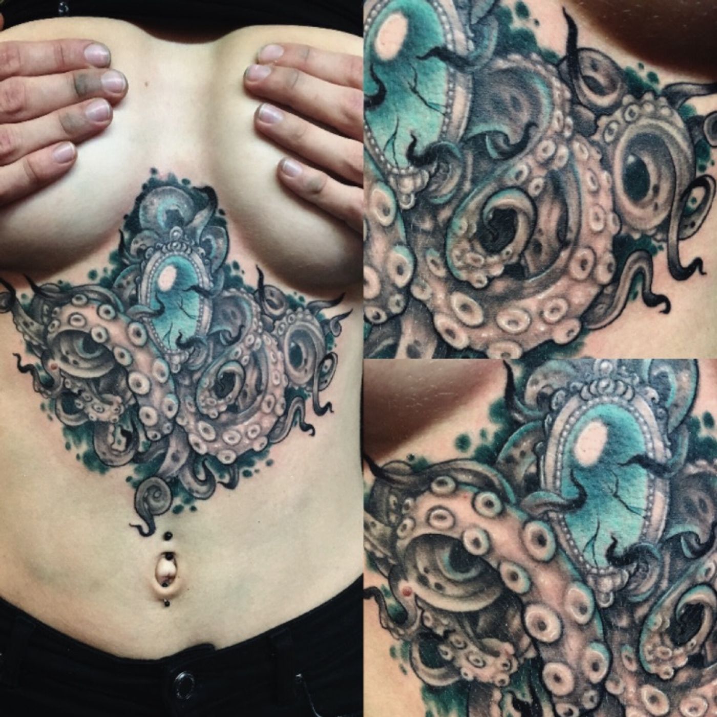 #underboobtattoo #underboob #neotraditional #neotraditionaltattoo #neotrad #neotradtattoo #kraken #krakentattoo #jeweltattoos #jewel