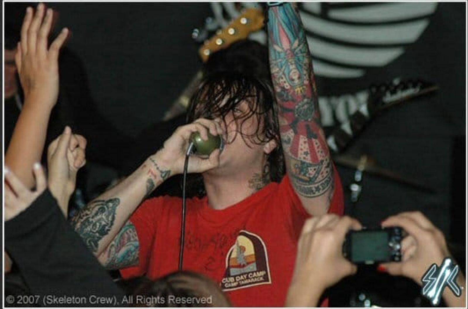 My Chemical Romance's Frank Iero with his Our Lady of Sorrows tattoo