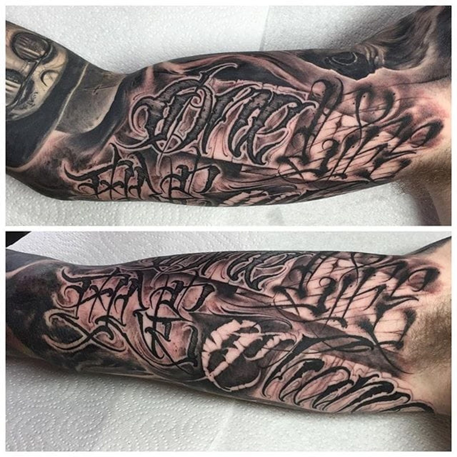 'One life, one chance' lettering tattoo by Anrijs Straume. #lettering #wording #blackandgrey #blackwork #AnrijsStraume