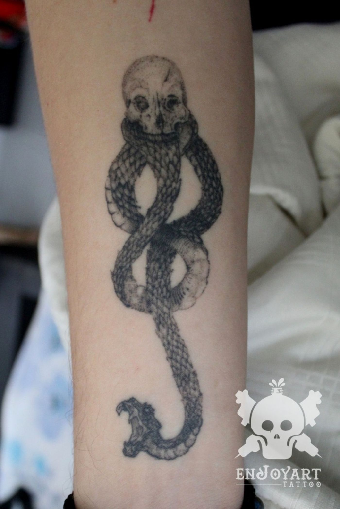 #HarryPotterTattoos #harrypotter #mortifago #skull #snake #snaketattoo #shadows #DarkTattoos #blackandgrey #blackwork