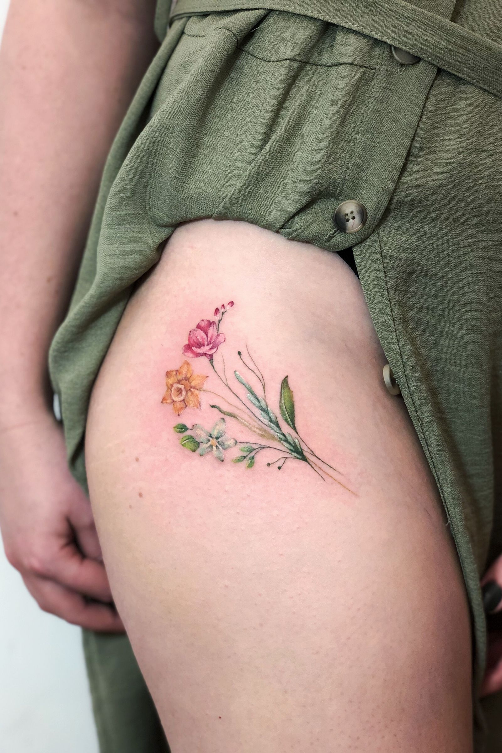 Bouquet 💐 #tattoo #tattoos #tatts #uk #nottingham #colourfultattoos #watercolourtattoo #flowertattoo #botanicaltattoo #flowers #colour #uktattoos #nottinghamtattoos #inked #ink #colours #floral #floraltattoo #tattooideas #tattoodesign #details #tattoodetails #greenpower #green #detailedtattoos #microrealism #femininetattoos #delicatetattoos