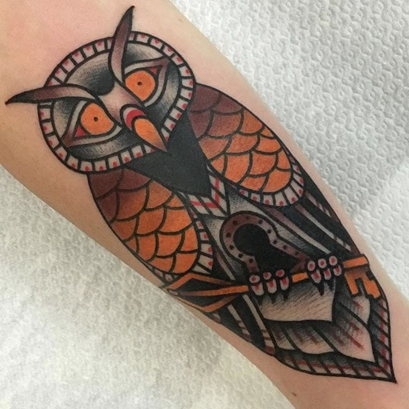 Traditional American style tattoo by Jeroen Van Dijk. #JeroenVanDijk #Amsterdam #traditionalamerican #traditional #owl