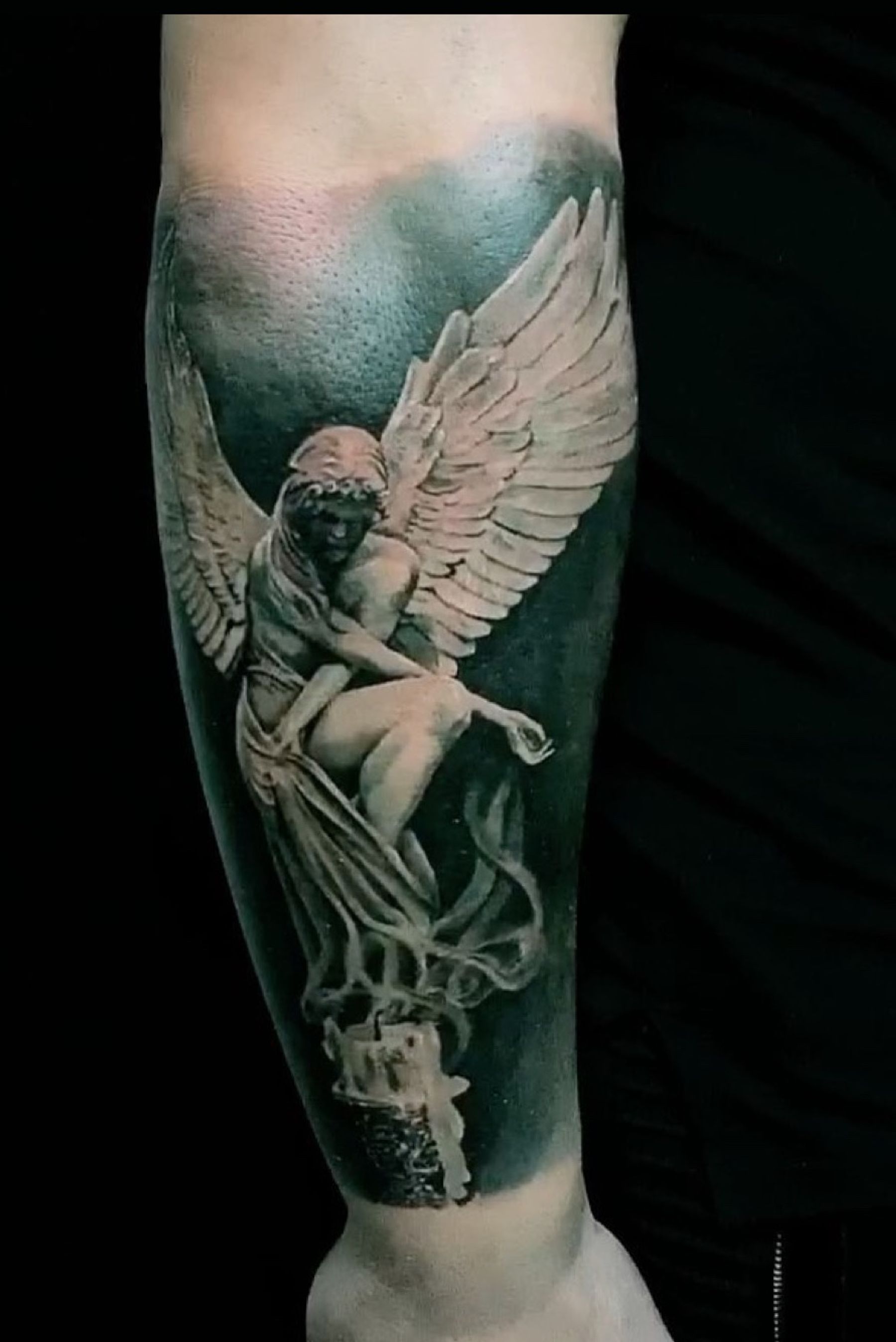 Realistic candle and angel tattoo done at our studio. @inkd_london.