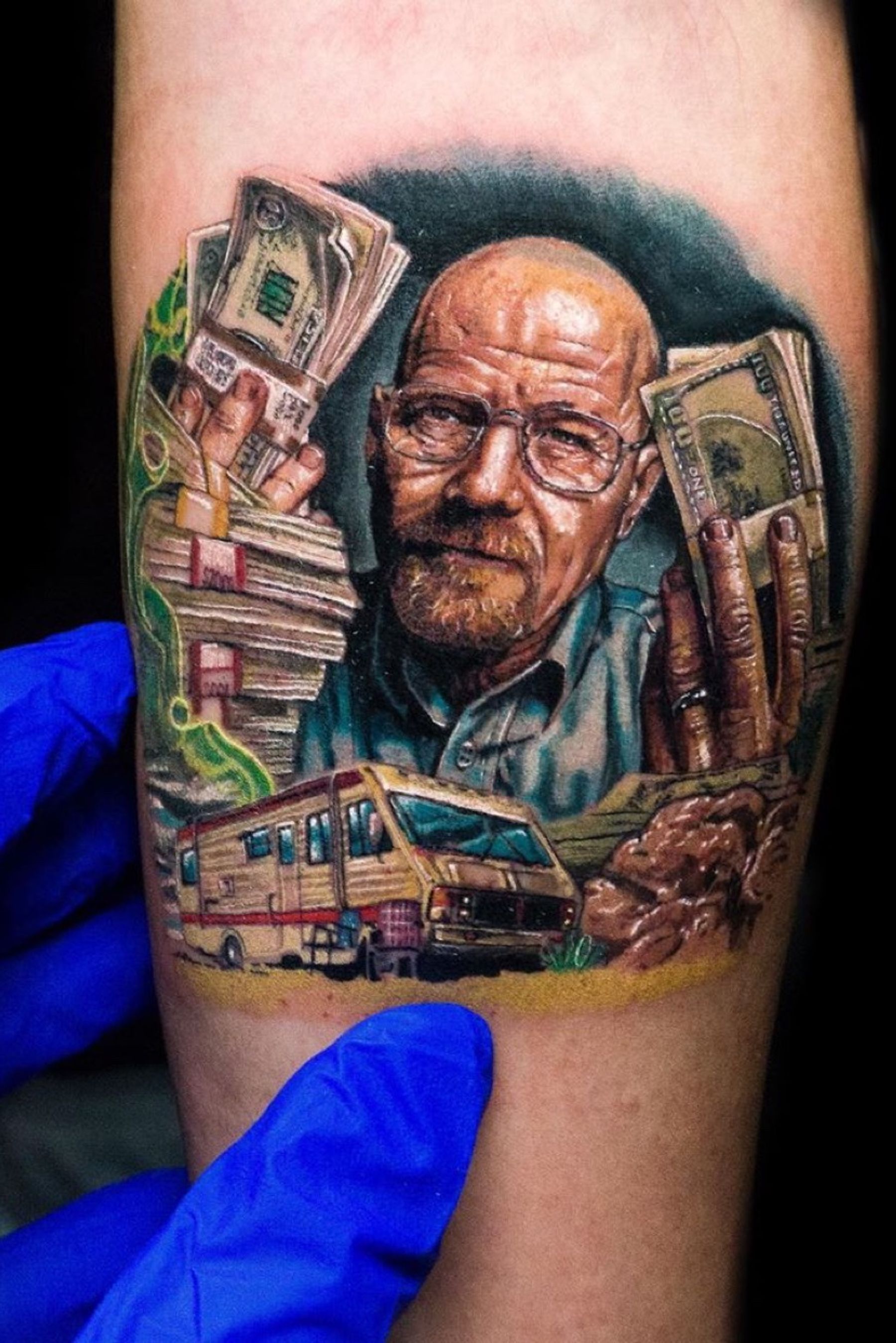 Breaking Bad #portraittattoo #colortattoo #realismtattoo #armtattoo