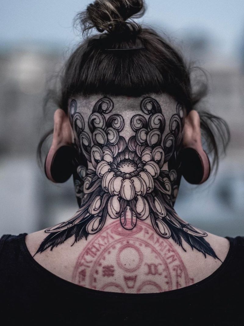 Back of neck tattoo by Arang #Arang #SeoulInkTattoo #Seoul #Korea #Seoultattoo #Seoultattooartist #Seoultattooshop #chrysanthemum #flower #floral #illustrative #necktattoo
