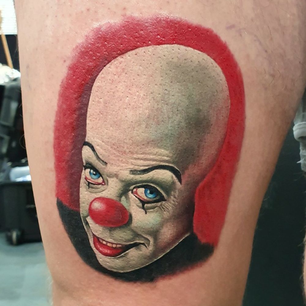 Pennywise done on day 2 @skindeep_uk tattoo freeze 2020 loving colour at the mo so come get something cool #tattoo #tattoocon #tattooconvention #skindeep #tattoofreeze2020 #truegent #truegentcartridges #inkjectanano #magnumtattoosupplies #fusionink #fusio #pennywise #it #ittattoo #pennywisetattoo #colourportrait #tattoomodel #tattoomodels #tattooedguys #guyswithtattoos #tattooedmen #beardsandtattoos #horror #horrortattoo #classichorror #classichorrormovies