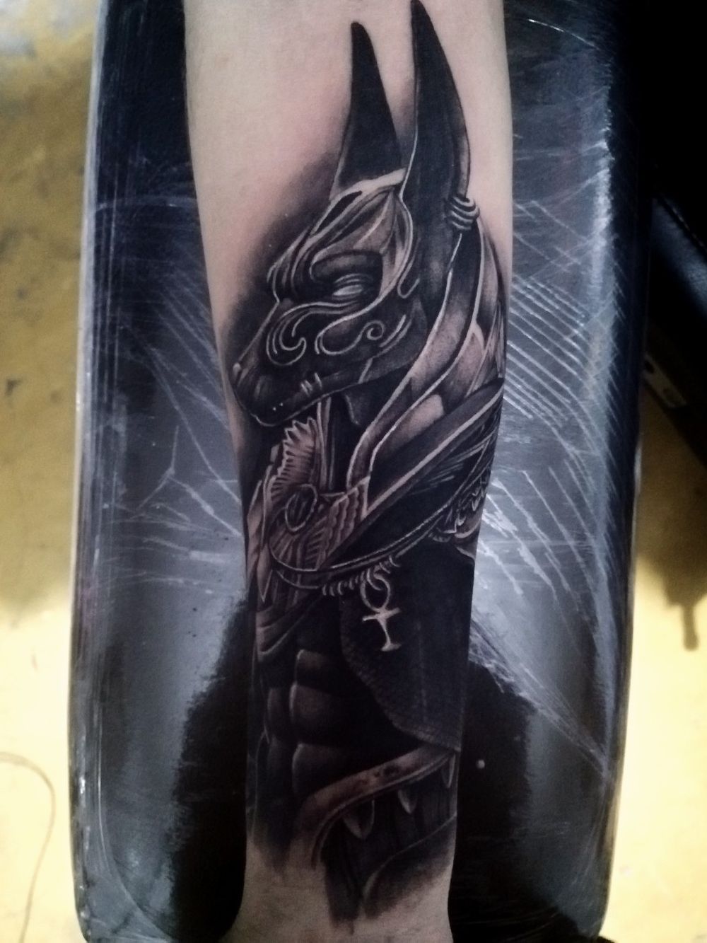 Anubis tattoo #tattooart #blackandgrey #blackandgreytattoo #Anubistattoo #anubis #armtattoos #realism #egipciantattoo #dioses #Black Citas y cotizaciones al +57 310 4479162 Realizado en Medellín | Antioquia