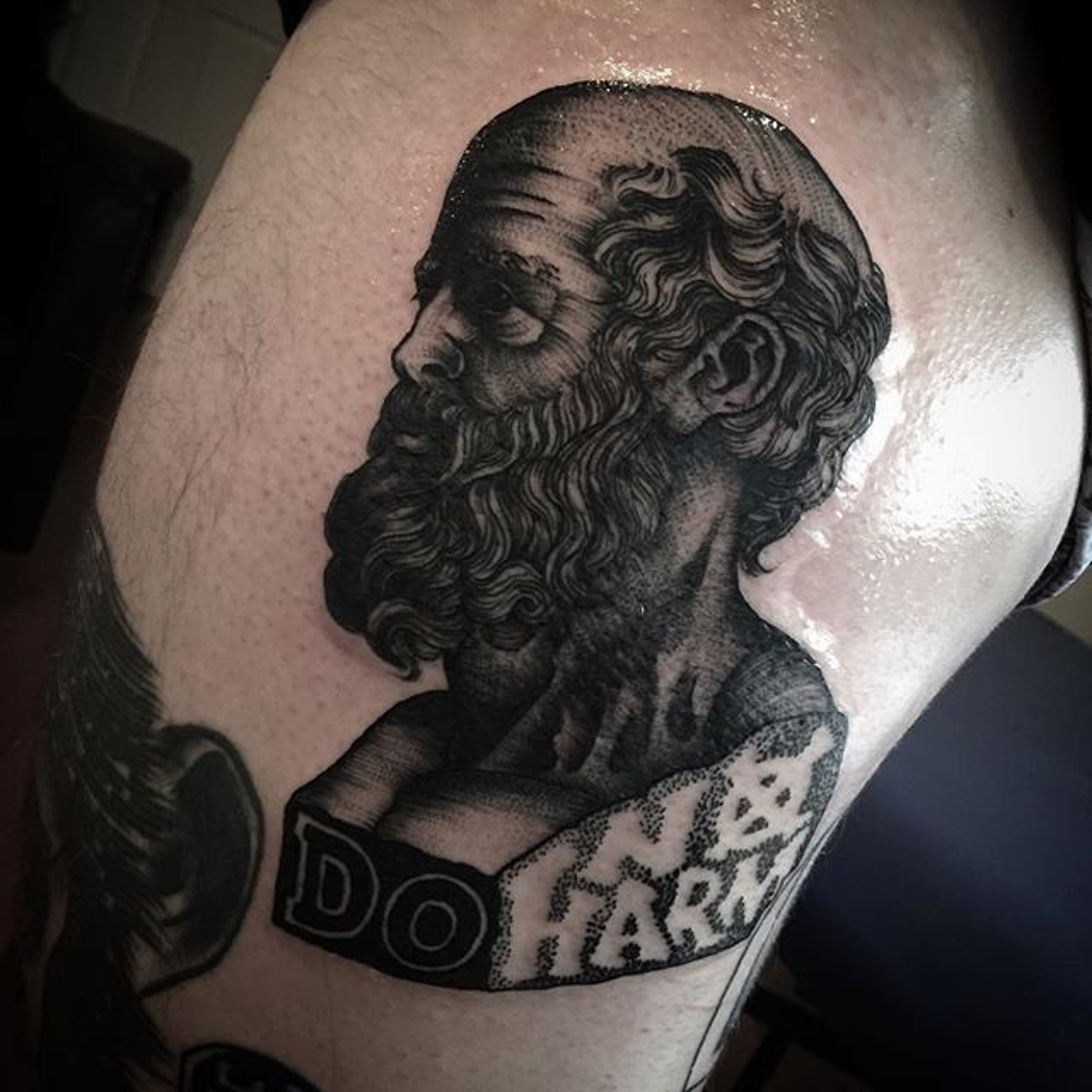 Hippocrates Tattoo by Terry James #hippocrates #hippocratestattoo #blackwork #blackworktattoo #blackworktattoos #blackworkartists #blackink #blacktattoos #darktattoos #TerryJames