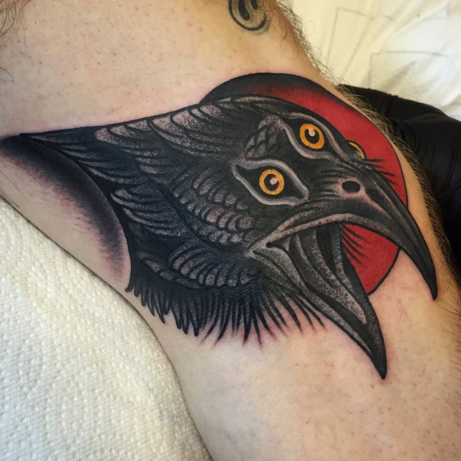 Solid Three-Eyed Raven Tattoo by kyle Crowell #KyleCrowell #ThreeEyedRaven #RavenTattoo #ThreeEyed #Raven #GameofThrones #GoT#GameofThronesTattoo