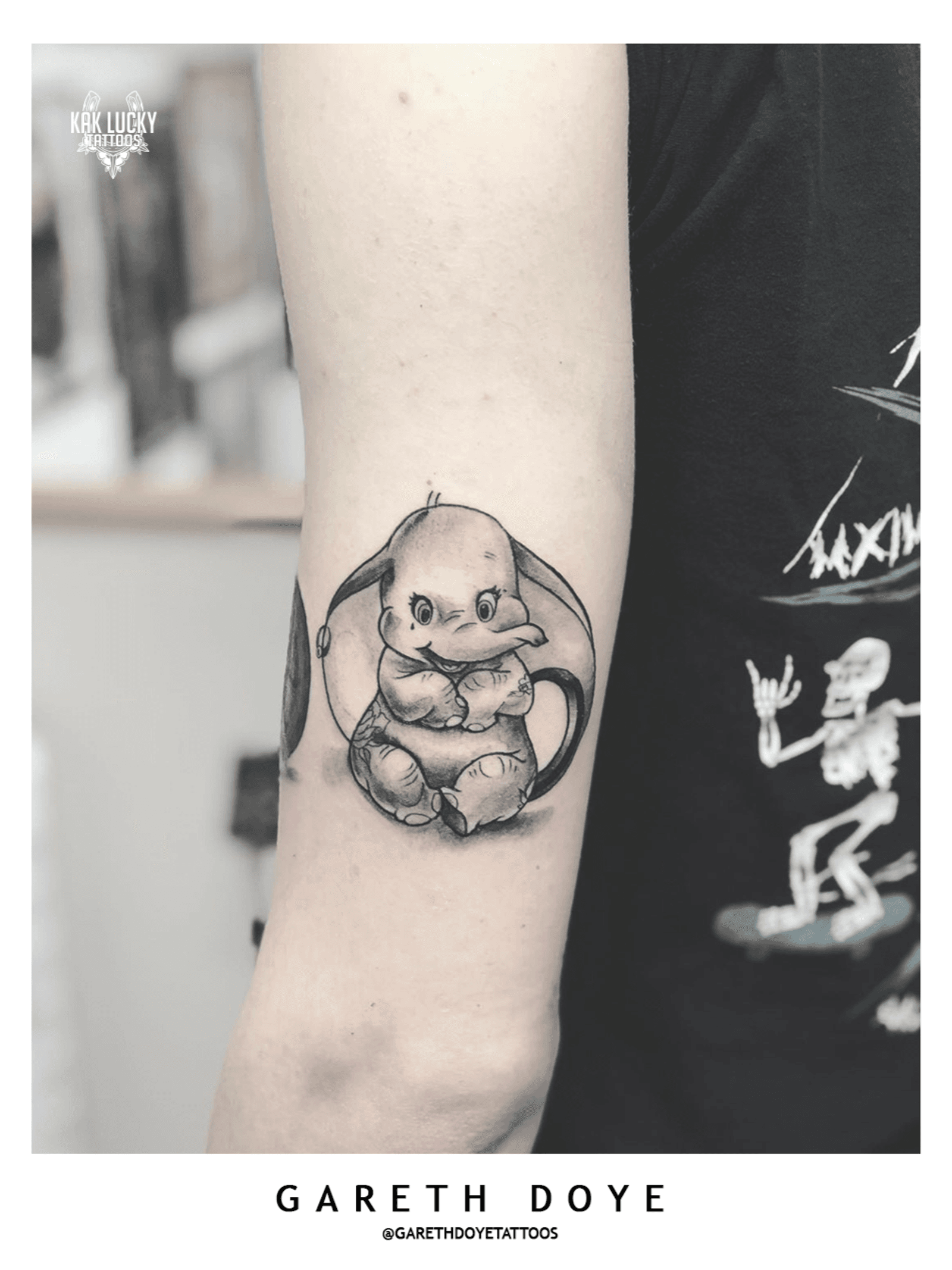 Peanut Gallery . . . #sweet little #dumbo tattoo by Gareth Doye Tattoos at @luckyironstattoocph. . . . WALK INS WELCOME! Call - 021/422/2963 Email - info@kakluckytattoos.com . . . @flashheal @kakluckytattoos @luckyironstattoocph @south_african_tattoo_society . . . #tattoo #tattoos #art #dumbo #elephant #capetown #kakluckytattoos #copenhagen #luckyironstattoo #blackandgrey #blackclawneedle #electrumstencilproducts #kaapstad #capetowntattoos #mood #cute #love
