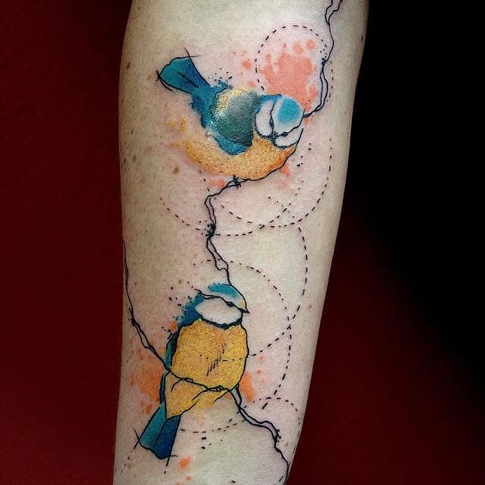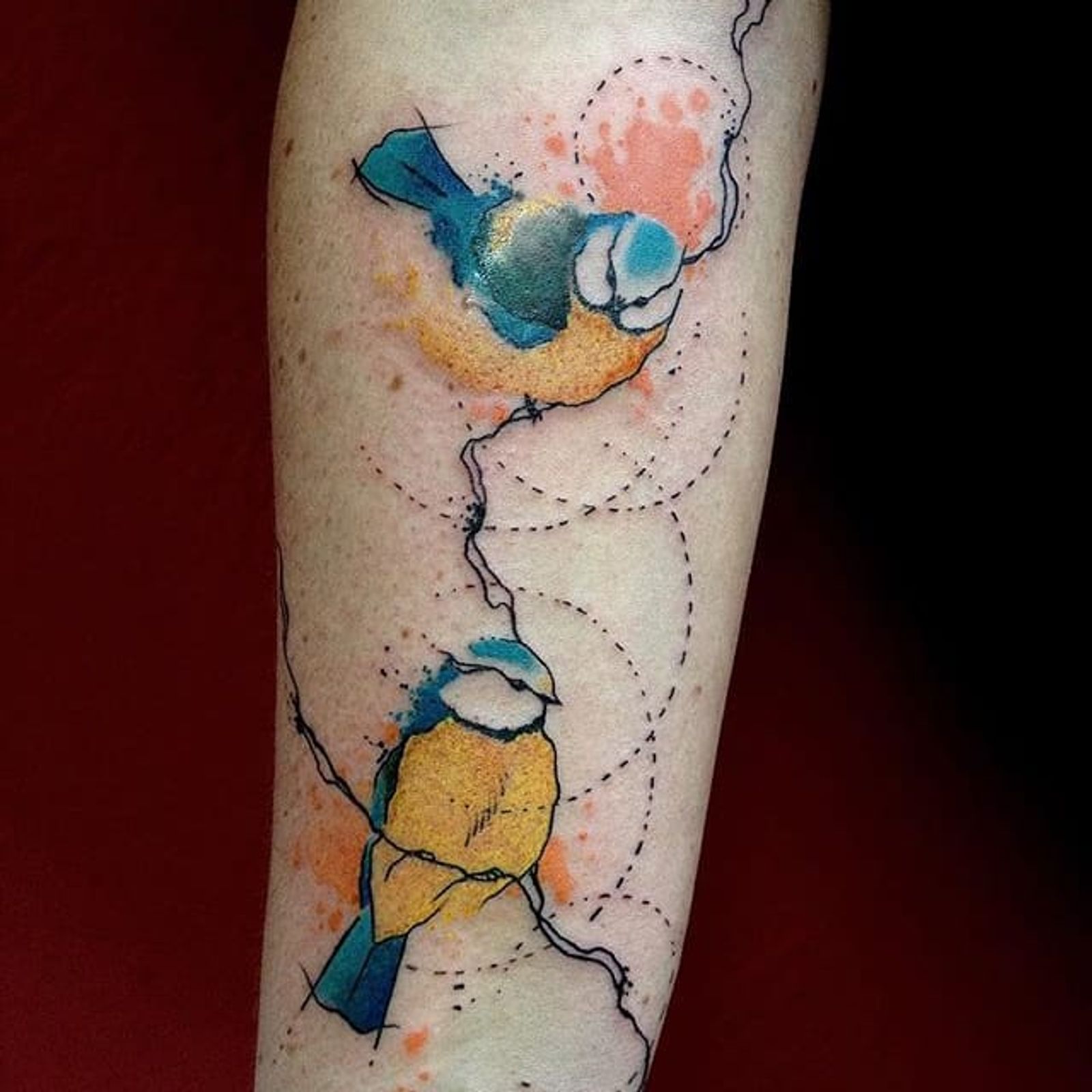 Abstract color splash blue tit tattoo by Bambi Bambs. #abstract #watercolor #splatter #splash #bird #bluetit #bluetitbird #BambiBambs