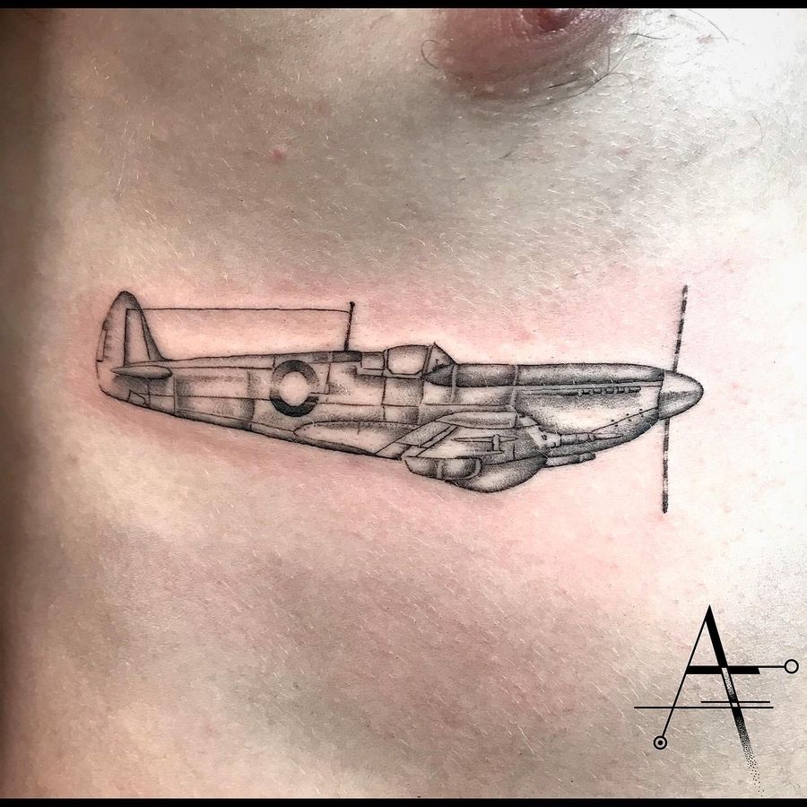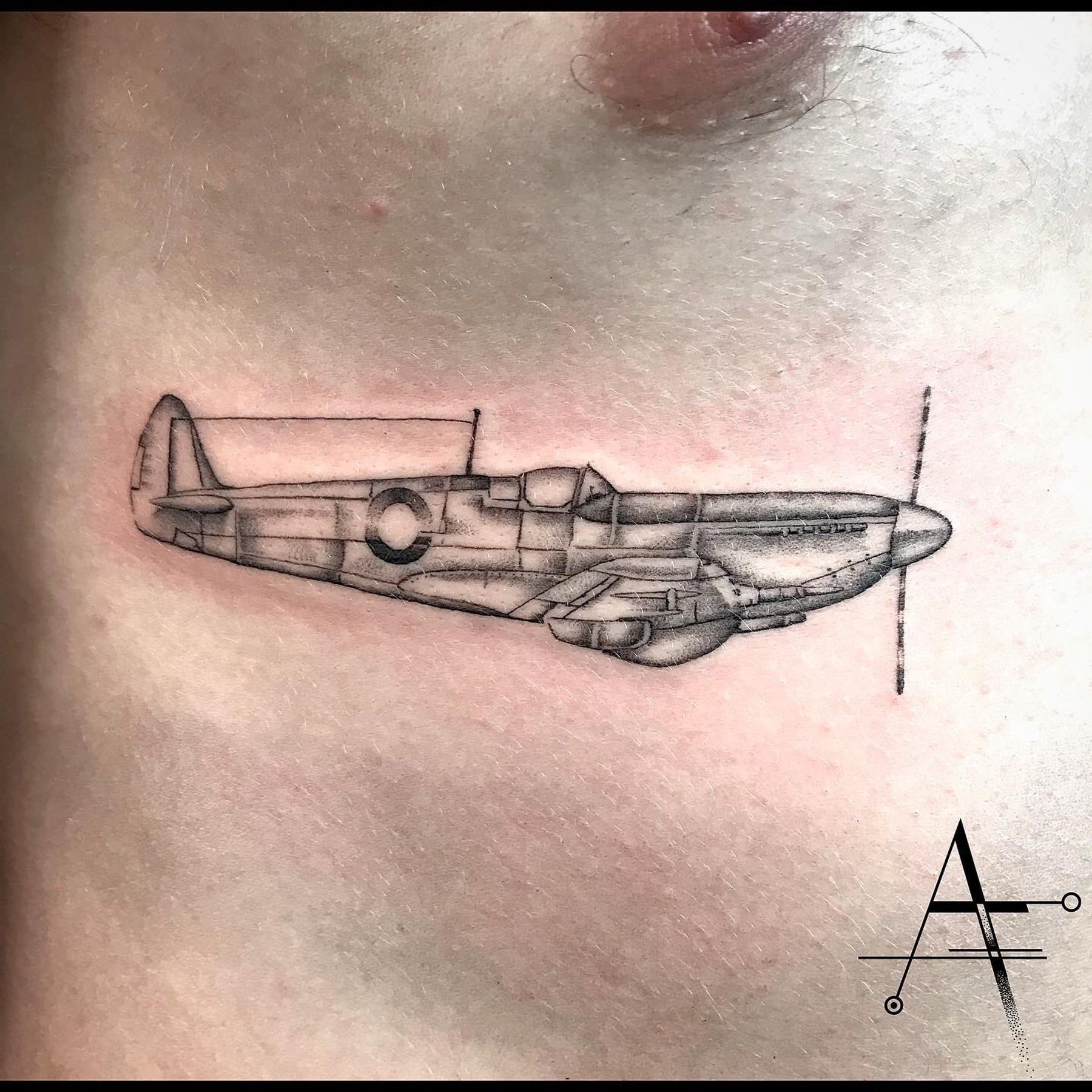 Spitfire Mk VIII... . For custom designs and booking; alperfiratli@gmail.com #finelinetattoo #realistic #fineline #tattoo #tattooartist #tattooidea #art #ink #inked #customtattoo #tattooist #fightertattoo #airplane #airplanes #airplanetattoo #wartattoo #war #worldwartwo #worldwar2 #planes #realistictattoo #planetattoo #oldplane #plane #fighterpilot #fighterplane #spitfire #birdsofinstagram #ww2 #wwii