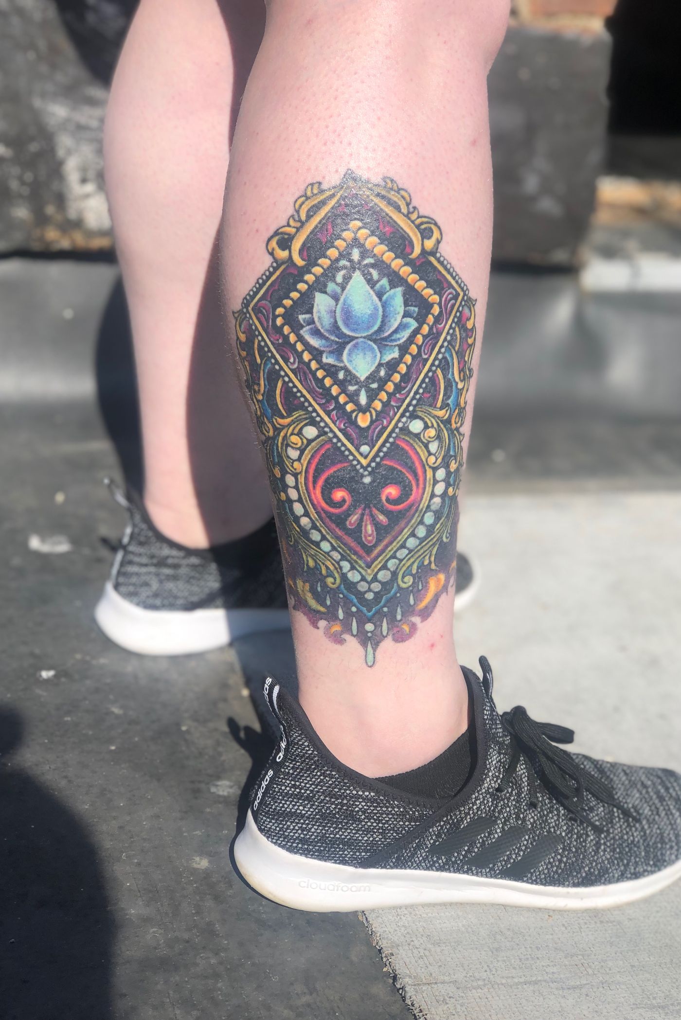 Healed ornamental mehndi calf coverup tattoo #coveruptattoo #ornamentaltattoo #mehnditattoo #calftattoo #coverup