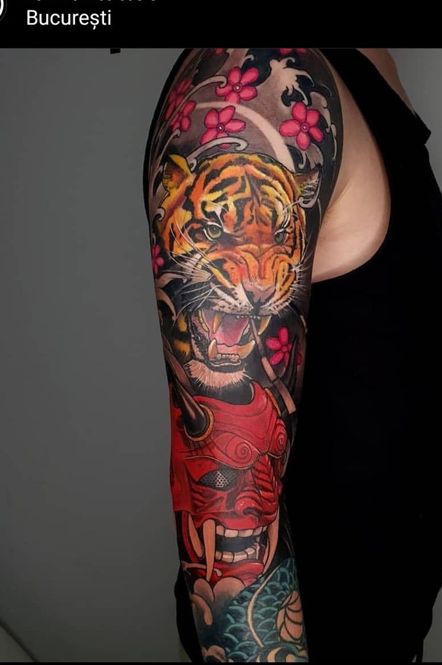 Oni mask and tiger Oni mask Tiger Japanese tattoo #japanesetattoo #onidemon #neotraditional #japanese #tiger