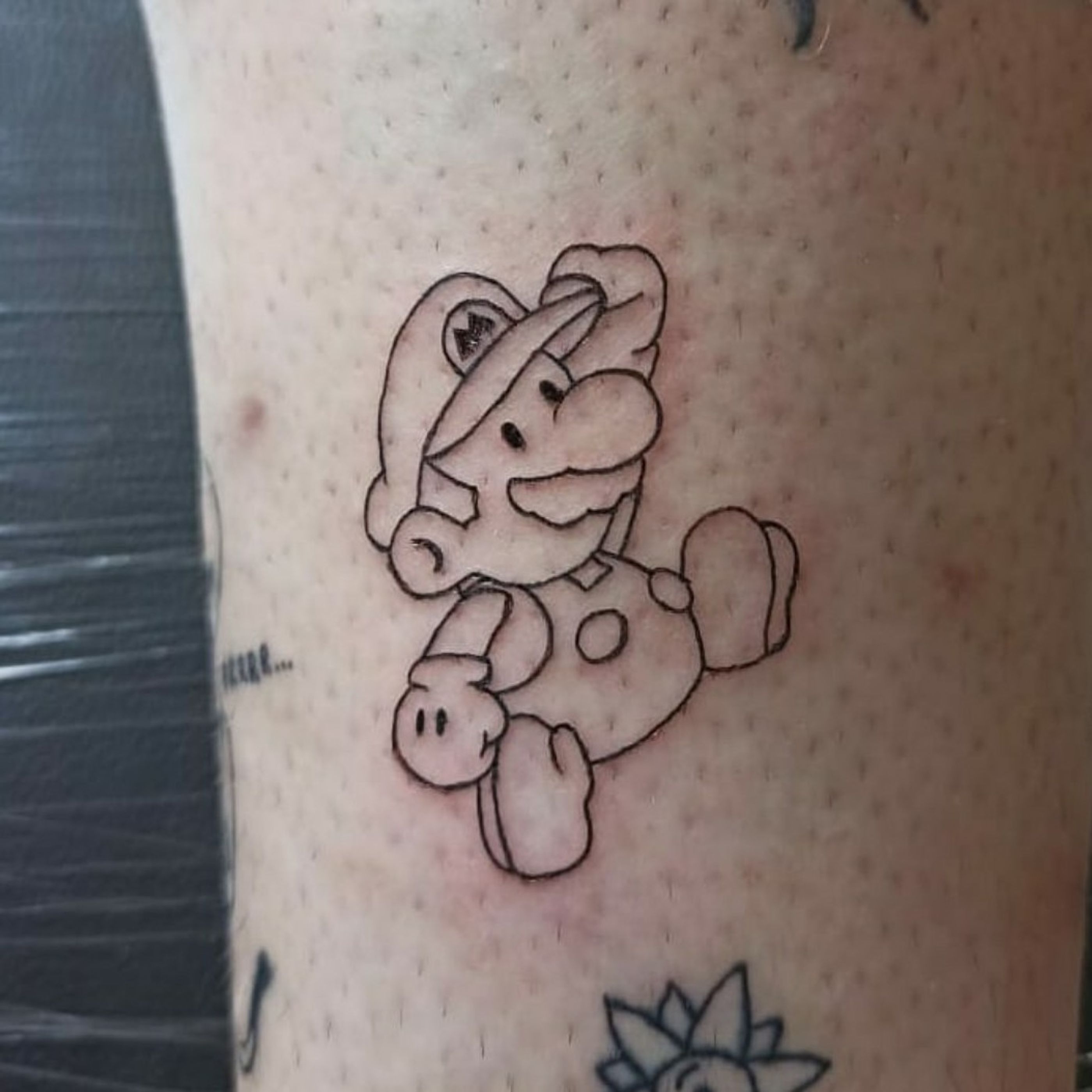 MARIO BROS TATTOO. . GRACIAS POR LA CONFIANZA. @_tonymoramora . #tattoo #ink #tatuajes #blackwork #finelinetattoo #oldschooltattoo #traditionaltattoo #neotraditionaltattoo #blackandgreyinkk @tattoodo
