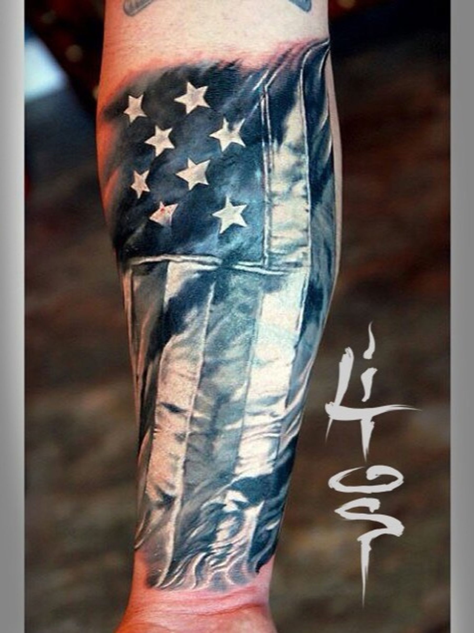 American Pride silk flag black and gray tattoo project.