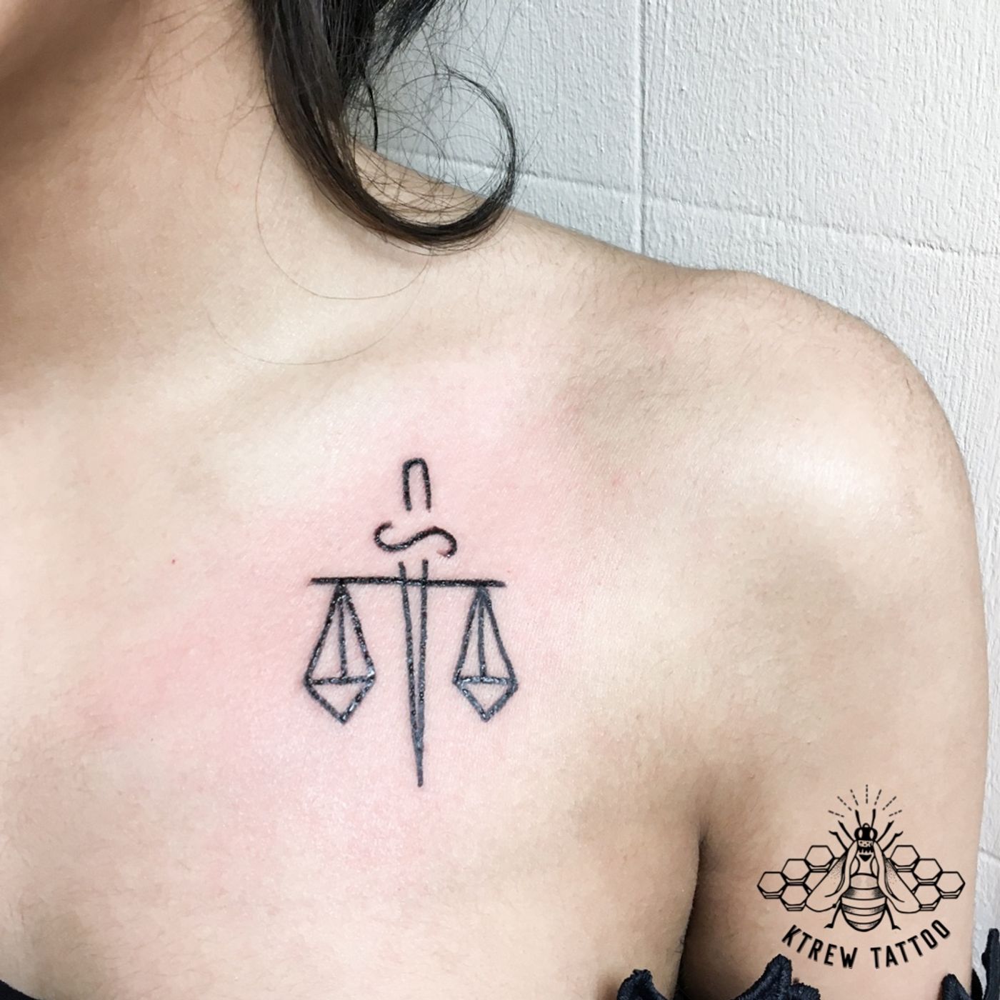 Libra Scale Linework Tattoo by Kirstie @ KTREW Tattoo • Birmingham UK 🇬🇧 #libra #scale #tattoo #linework #fineline #birminghamuk #tattooist
