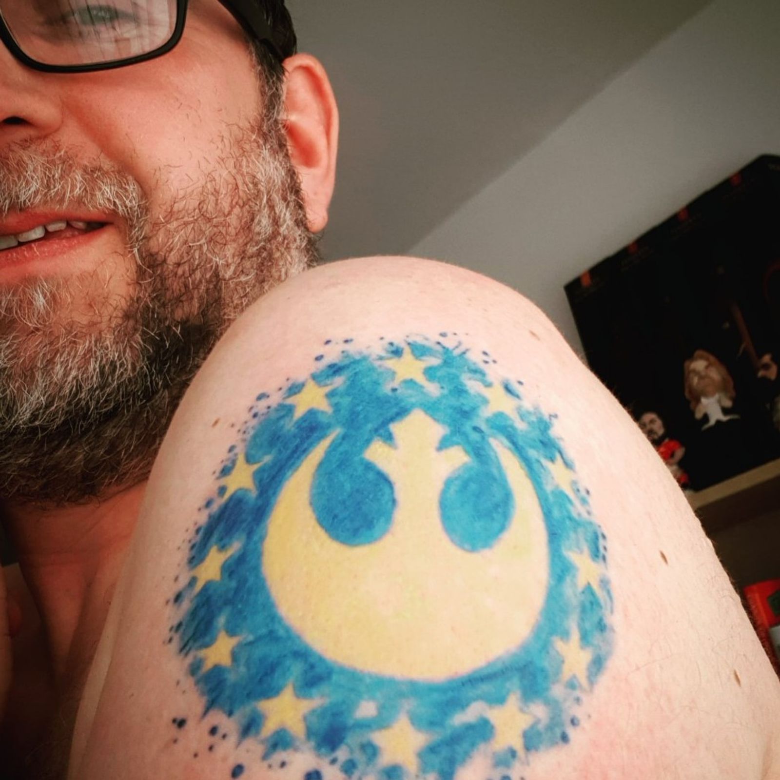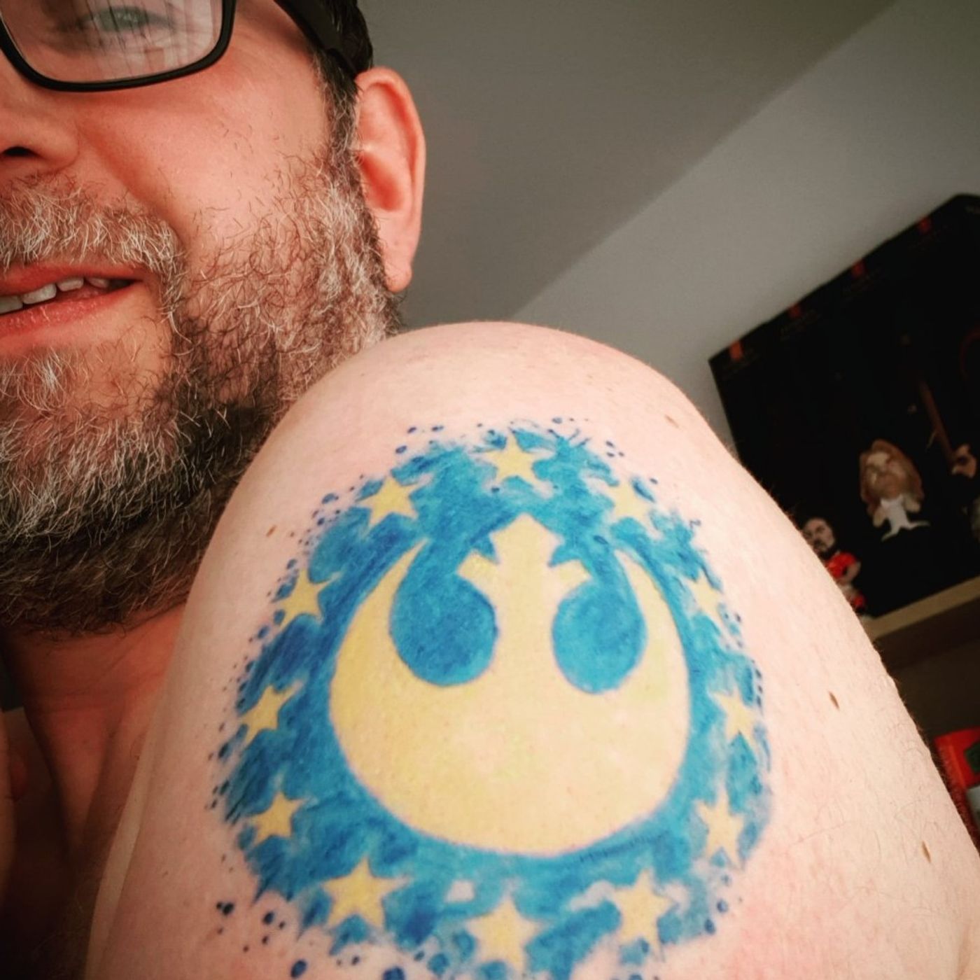 Tattoo #3 for me Star Wars starbird in an EU flag #EUtattoo #StarWarsTattoo Done by Dave O'Brian at KatDemon Tattoos in Whitchurch, Cardiff