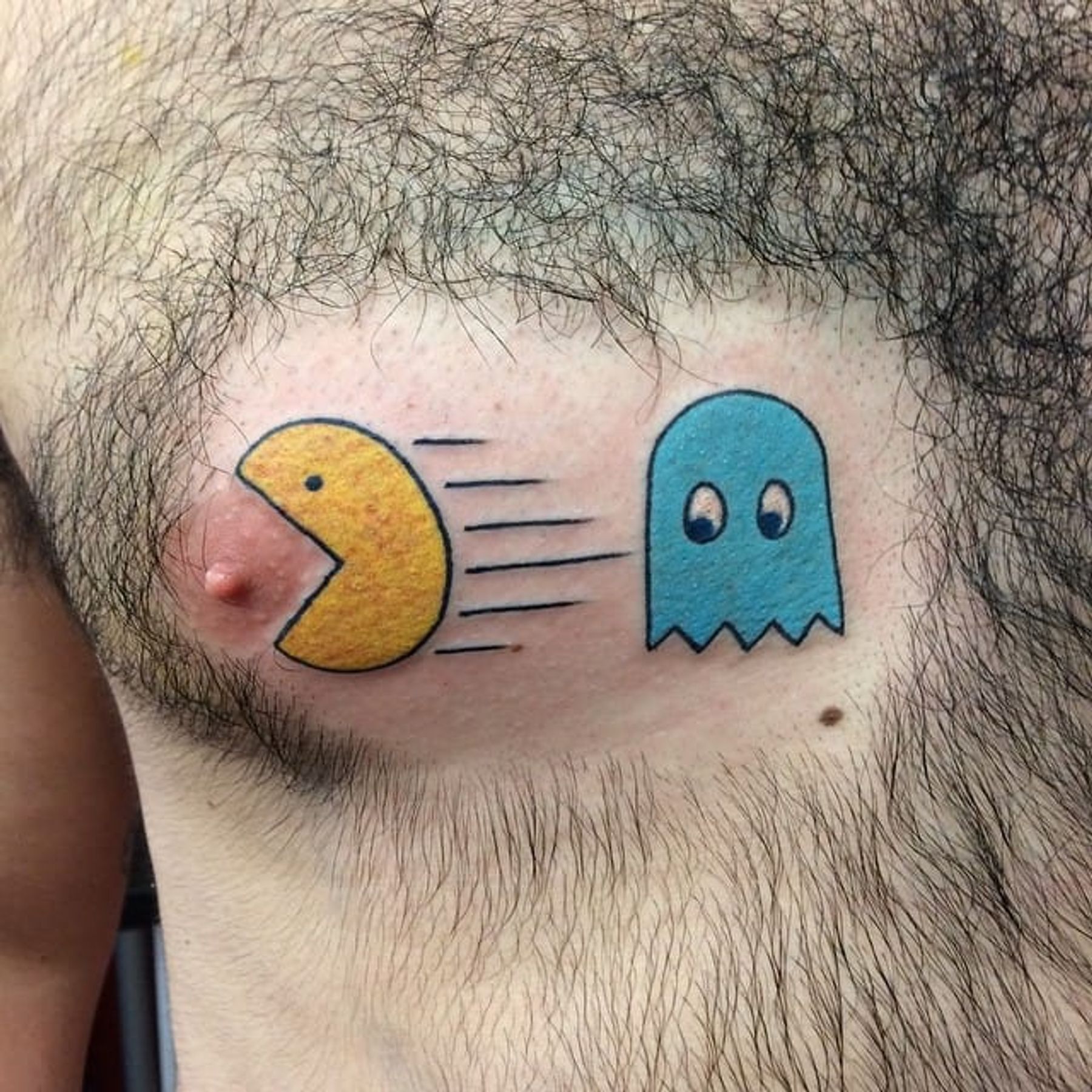 Forget the ghost - go for the nipple. By Jesse Dittmar #JesseDittmar #pacman #funny #computergames #arcadegame