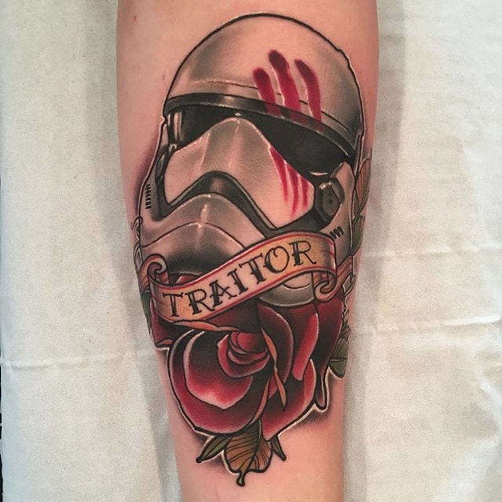 Storm Trooper tattoo by Matt Renshaw. #neotraditional #starwars #stormtrooper #scifi #movie #character