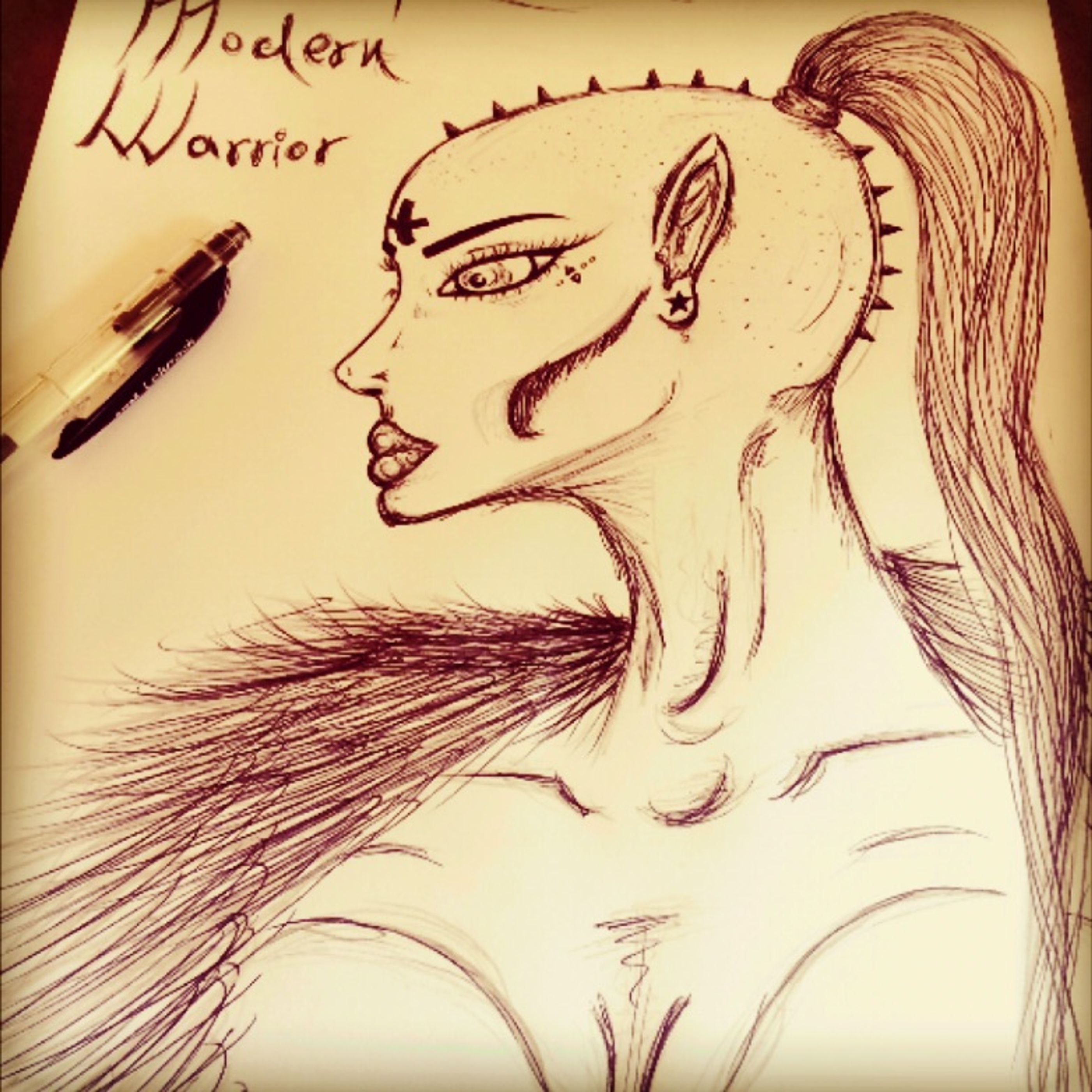 My little girl just named my sketch.. Kenza Kinzeek the modern warrior! 😂🦄✨ #sketch #art #warrior