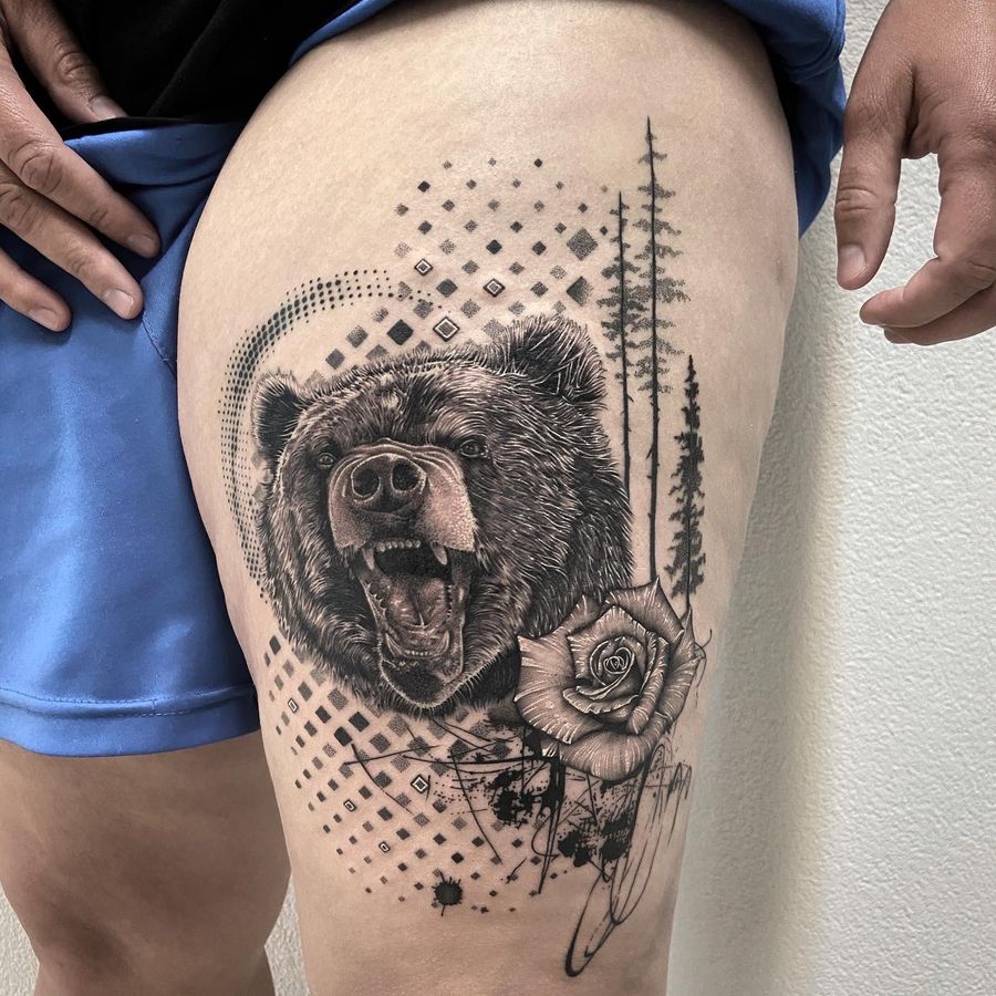 #photooftheday #tattoooftheday #tattoo #tatouage #realistic #realistictattoo #realism #reslisticink #bear #beartattoo #rose #rosetattoo #geometrictattoo #thightattoo #blackandwhite #blackandwhitetattoo #blackandgrey #lausanne #lausannetattoo #tattoolausanne #fann_ink