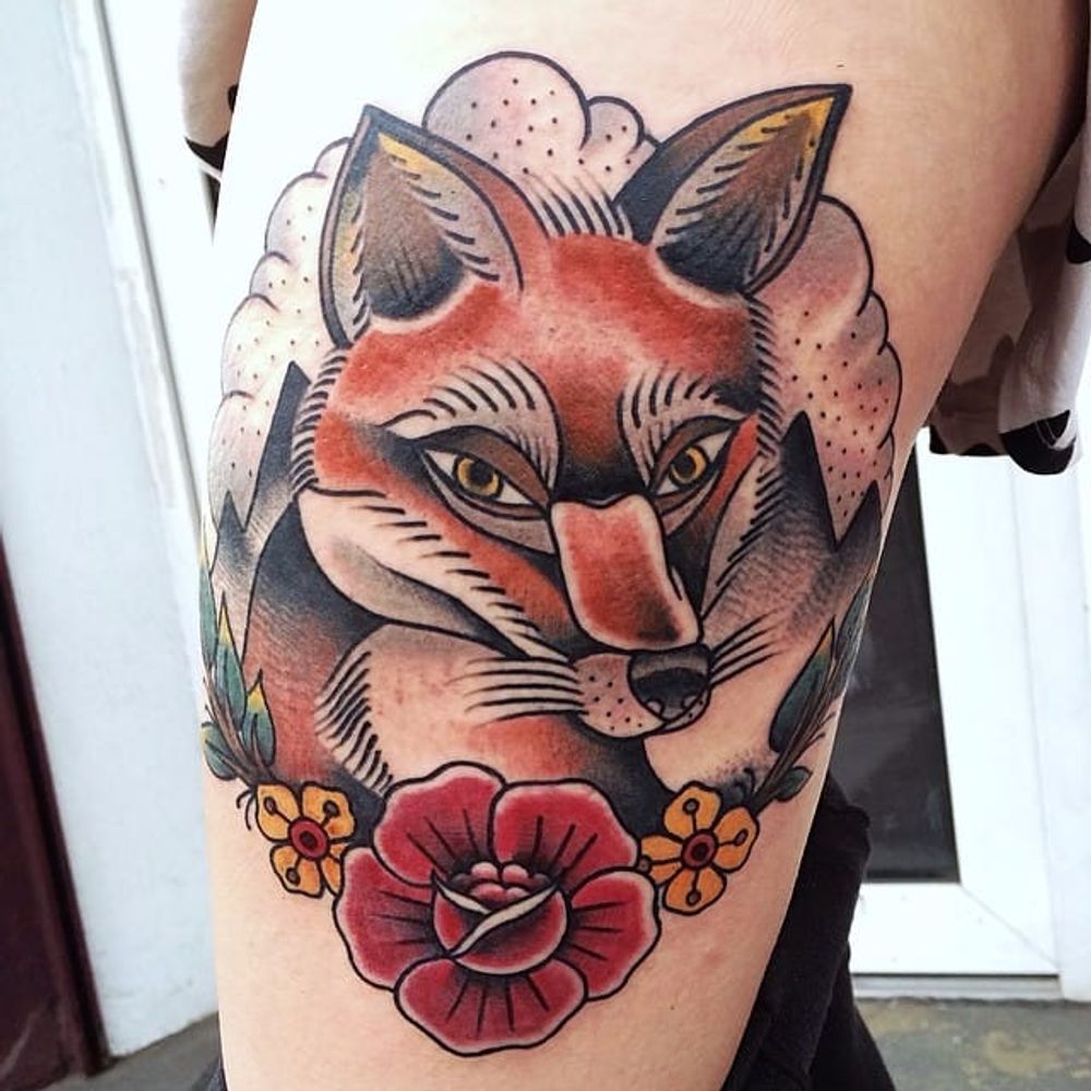 Traditional Fox Tattoo by Arthur Voss #fox #foxtattoo #foxtattoos #traditionalfox #traditionalfoxtattoo #traditional #traditionaltattoo #traditionalanimal #ArthurVoss